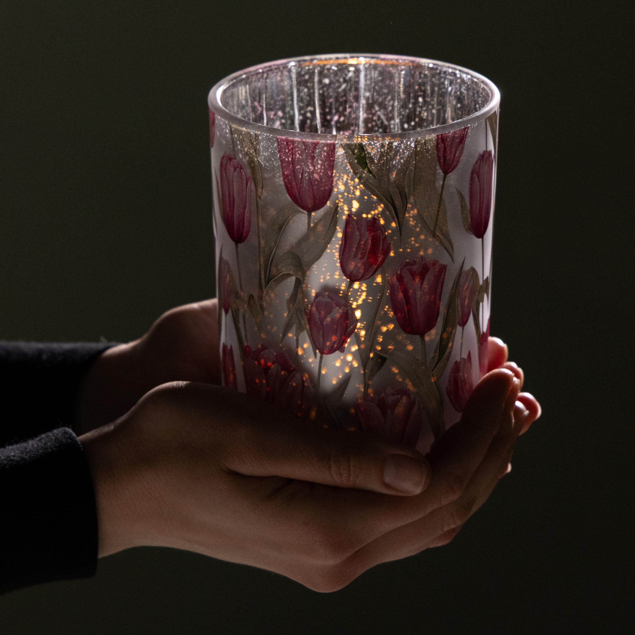 Elegant lykt med tulipanmotiv for stemningsfull vårdekorasjon, 12,5 cm, 2 stk.
