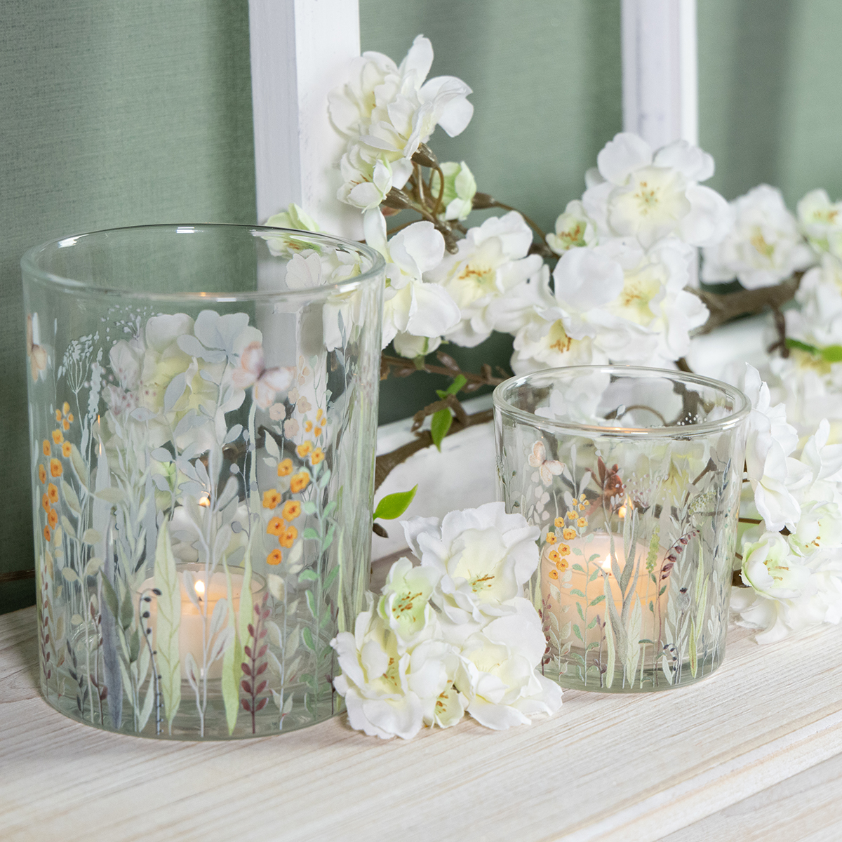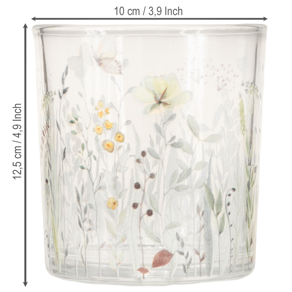 La kreativiteten løpe løpsk: Kombiner lykten med andre glassdekorasjoner som små vaser eller skåler for å skape harmoniske utstillinger. Individuelle telys eller LED-lys skinner også vakkert takket være det transparente designet. Planlegger du en hagefest? Arranger flere av disse lyktene langs en hagesti eller på trebrett – effekten vil glede gjestene dine! Blomster- og sommerfuglmotivet gir et snev av vårlig letthet til arrangementene dine. Rett og slett en harmonisk følgesvenn for enhver årstid og enhver anledning.