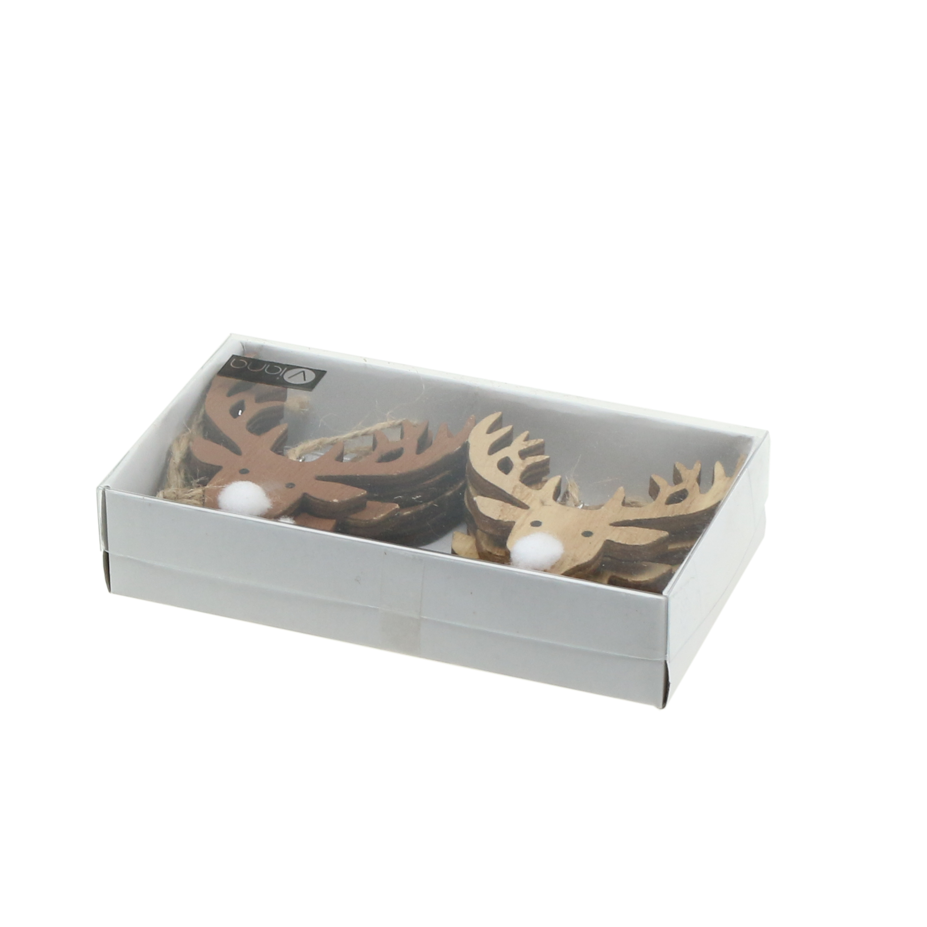 Produktnavn: Elghode tre å henge naturlig 6,5 x 7 cm 8stk