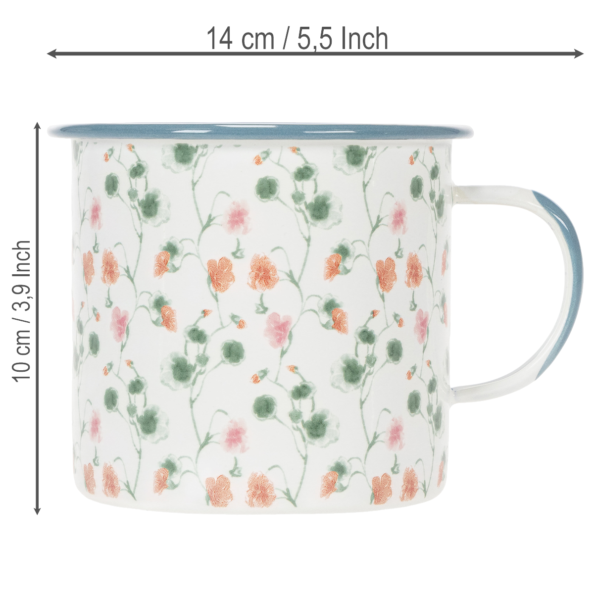 Du kan presentere favorittplantene dine eller dekorative ideer i denne plantekassen. Emaljekruset med de lekne blomstermotivene har mye vintagesjarm.