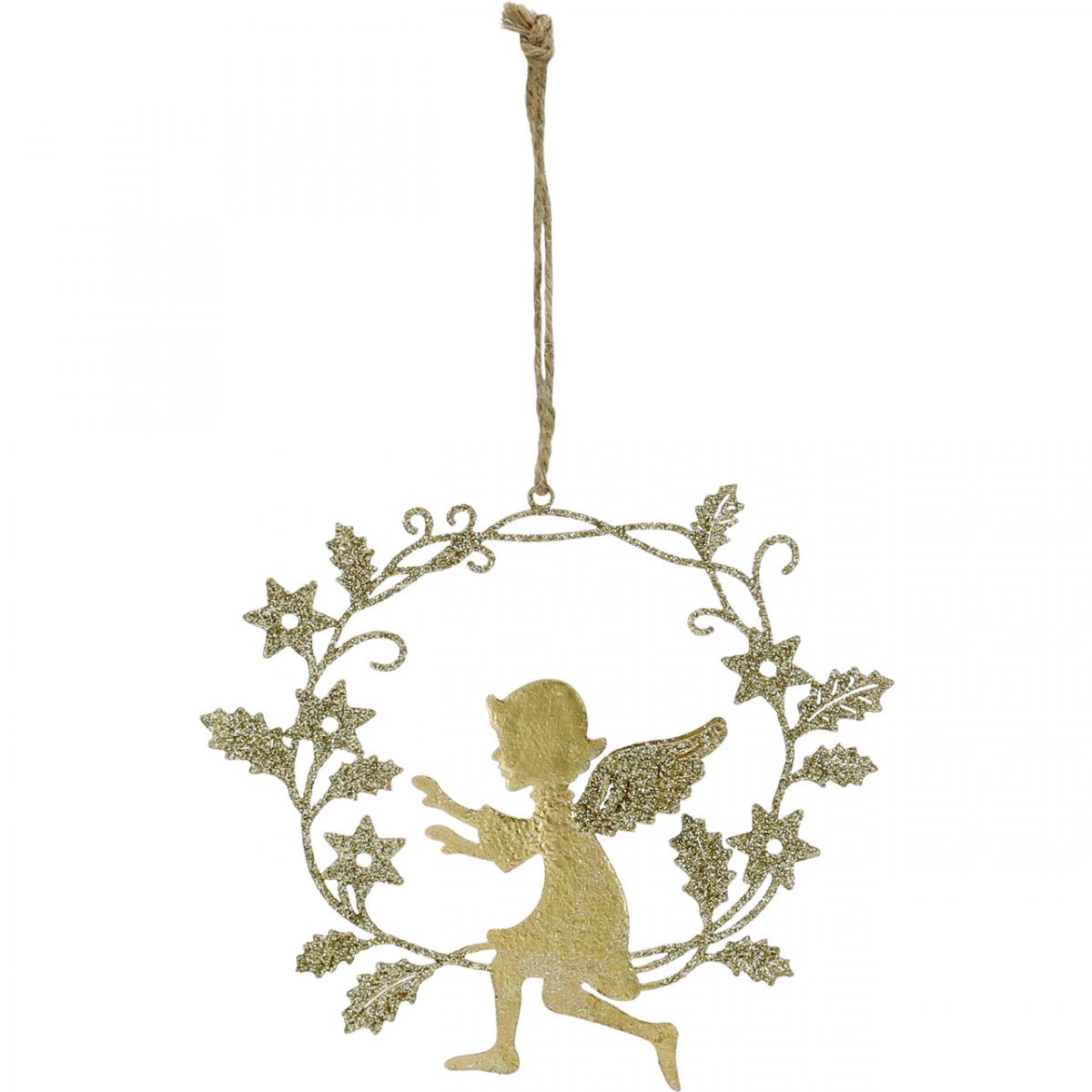 Englekrans, juledekorasjon, engel å henge, metallanheng Gylden H14cm B15,5