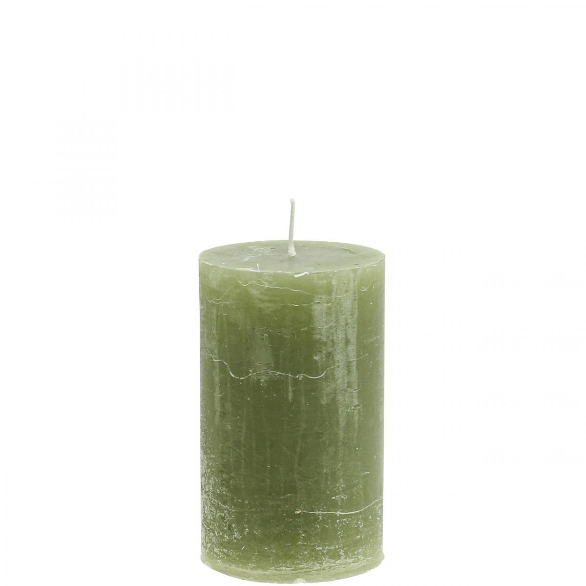 Produktnavn: Ensfargede olivengrønne kuppellys 60 × 100 mm, sett med 4, landlig stil, bohemsk, advent