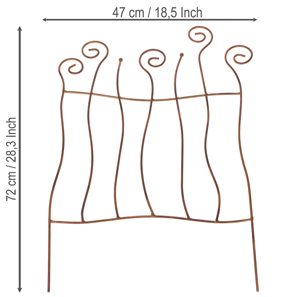 Skap et lite hageparadis med dette kunstferdig buede metallespalieret, og tilfør et snev av magi til uteplassen din! Se for deg klatreroser eller andre planter som slynger seg oppover dette elegante metallespalieret og gir hagen din en romantisk følelse. Den sofistikerte rustne finishen og den delikate bølgeformen gjør denne hagedekorasjonen i metall til et ekte blikkfang – enten det er til ditt eget hjem eller som en kreativ gave til hageentusiaster.