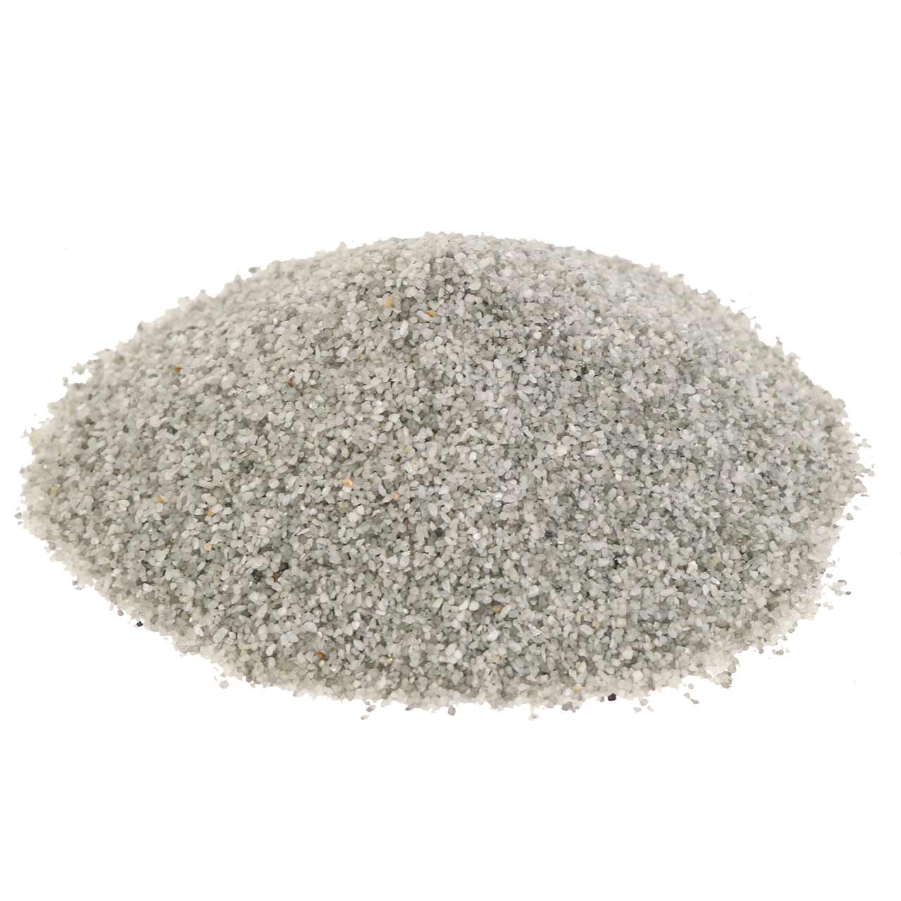 Du vil motta den gråfargede sanden i plastemballasje med en vekt på 2 kilo. De enkelte sandkornene er omtrent 0,1 - 0,5 millimeter store.