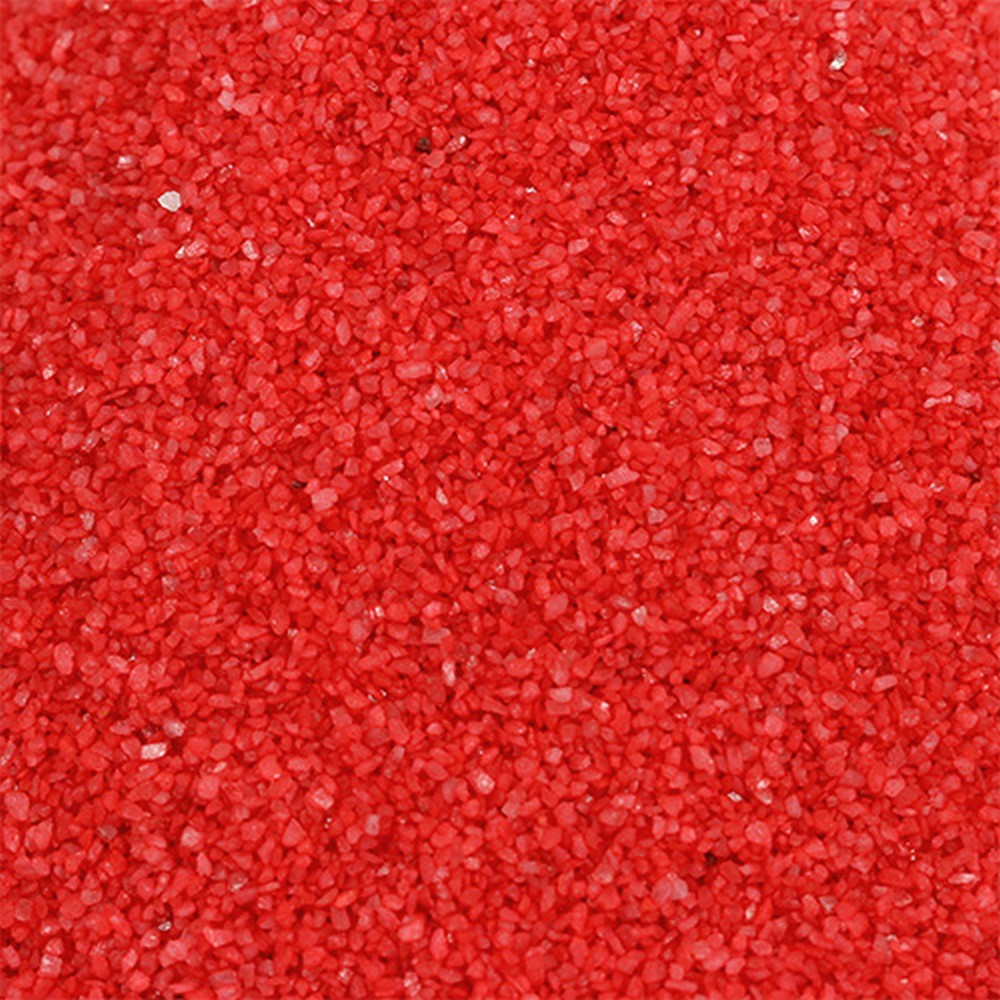 Naturproduktet er farget i knallrødt og tilbys i en pose som veier rundt 2 kilo. Sandkornene er hver omtrent 0,5 millimeter store.