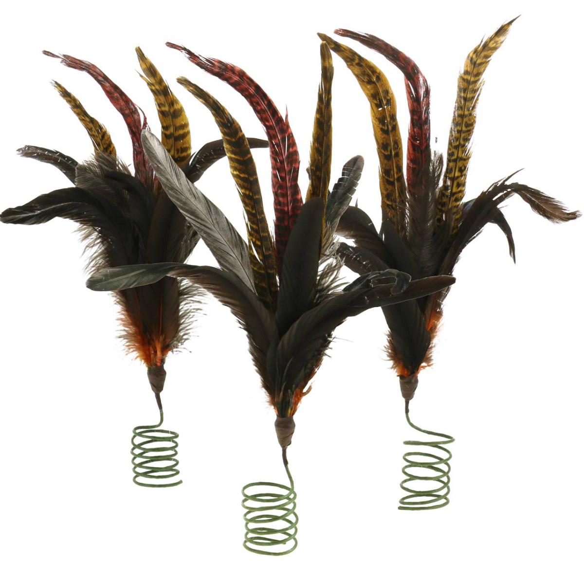 Fargerik fjærdekor på tråd vår vårdekor H35cm 3stk