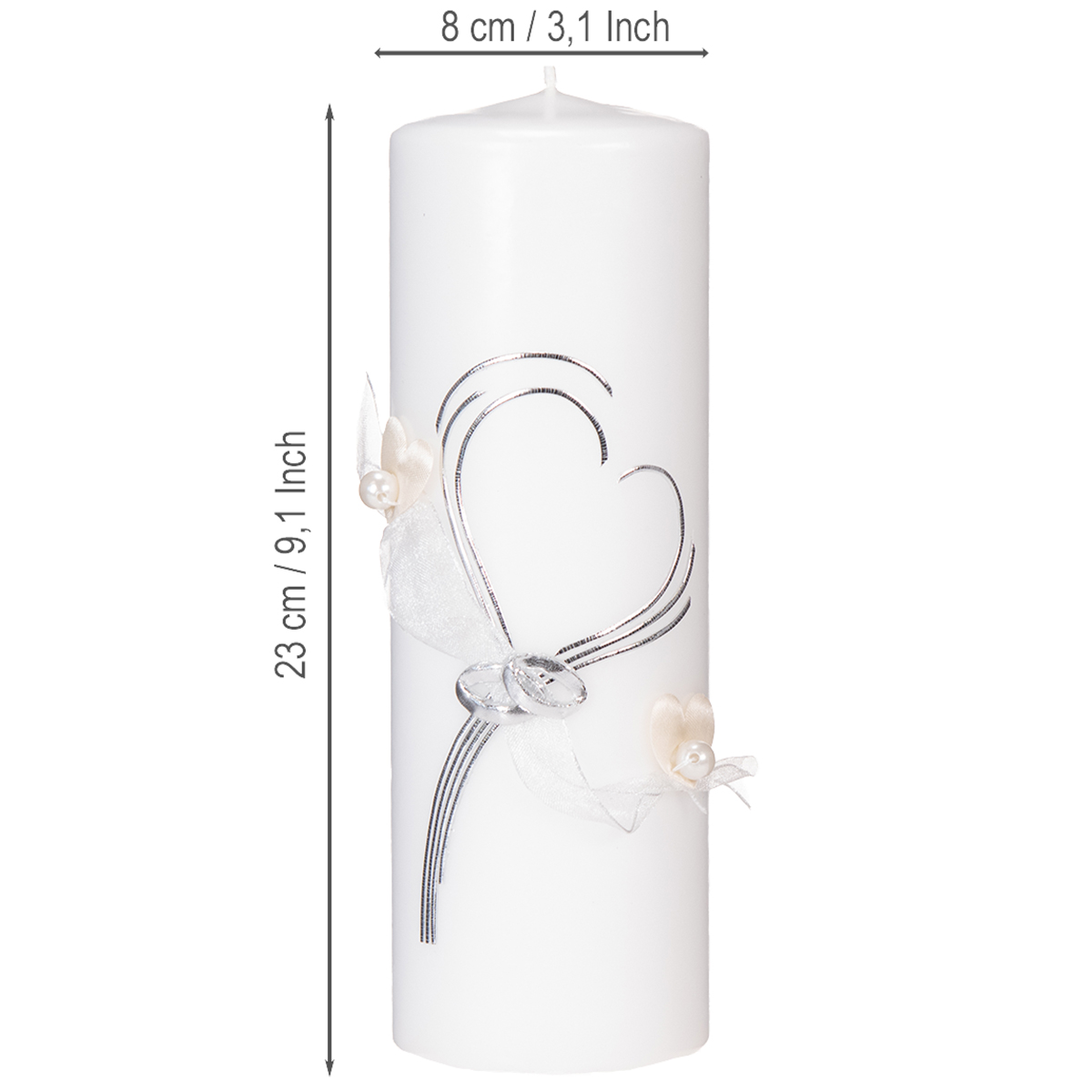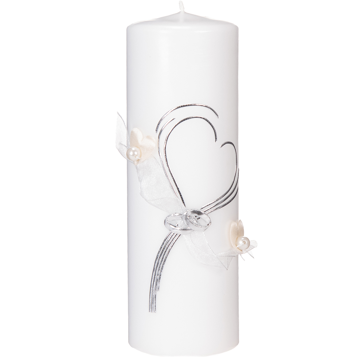Festlig bryllupslys med stilig hjertedesign, sølvpynt og organzabånd – ideelt for bryllup og sølvbryllupsdager, 230/80 mm