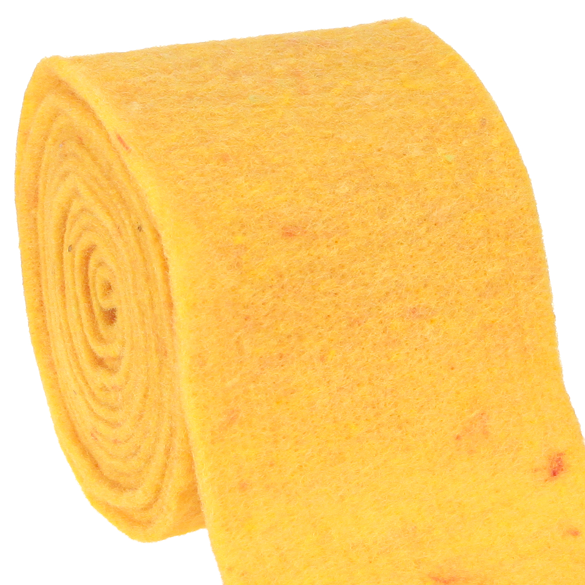 Det gule filtbåndet er viklet inn i en stor rull og er omtrent 15 centimeter bredt. Lengden er ca 5 meter.