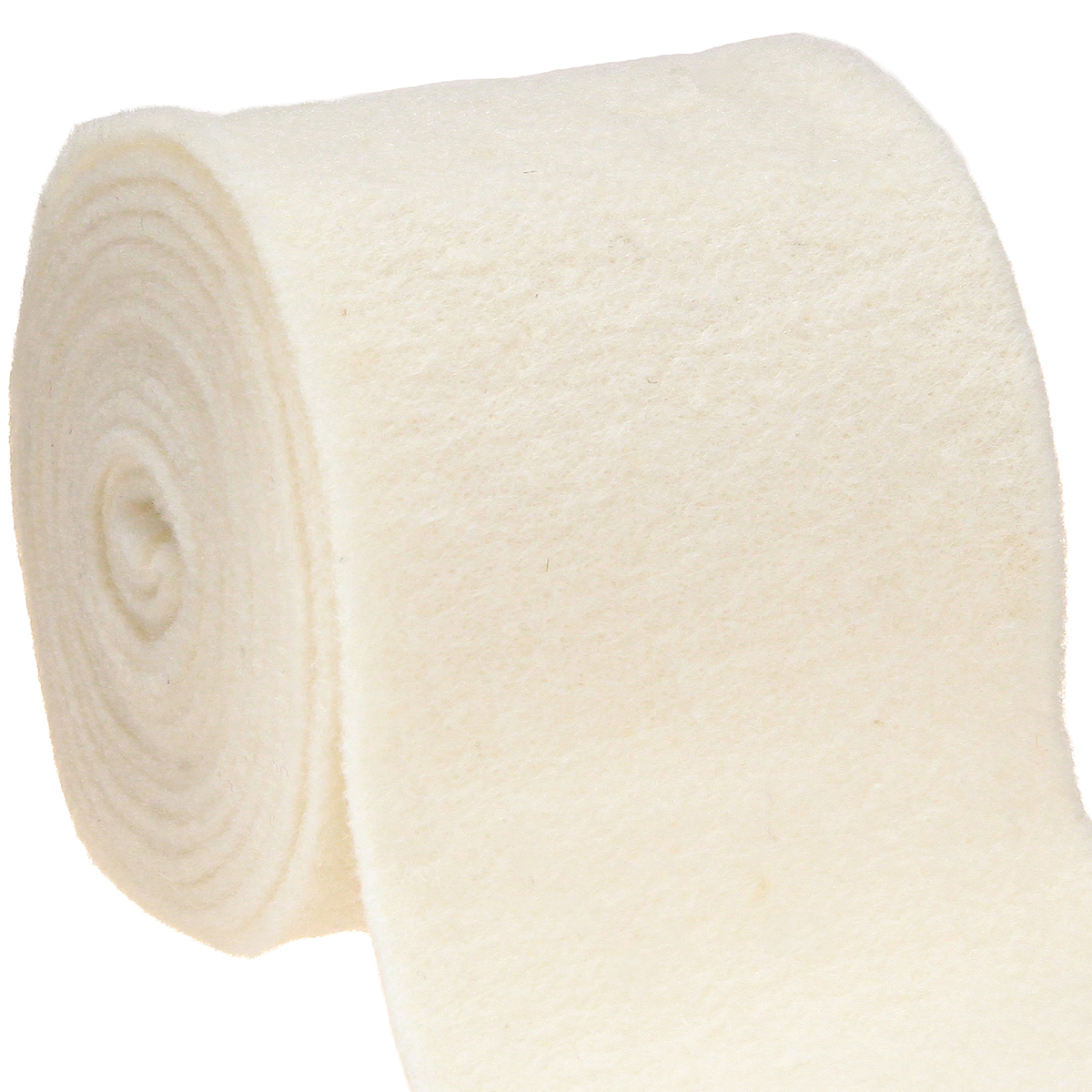Det hvite filtbåndet er viklet inn i en rulle og har en lengde på omtrent 5 meter og en bredde på omtrent 15 centimeter. Alle kanter er bevisst avrundet og sliter derfor ikke. Du kan også bruke det fleksible materialet til å kutte ut flotte figurer. Så du kan lage det til de små sauene, kyrne og kyllingene dine og bruke figurene til en bondekollage eller til veggen på barnerommet.