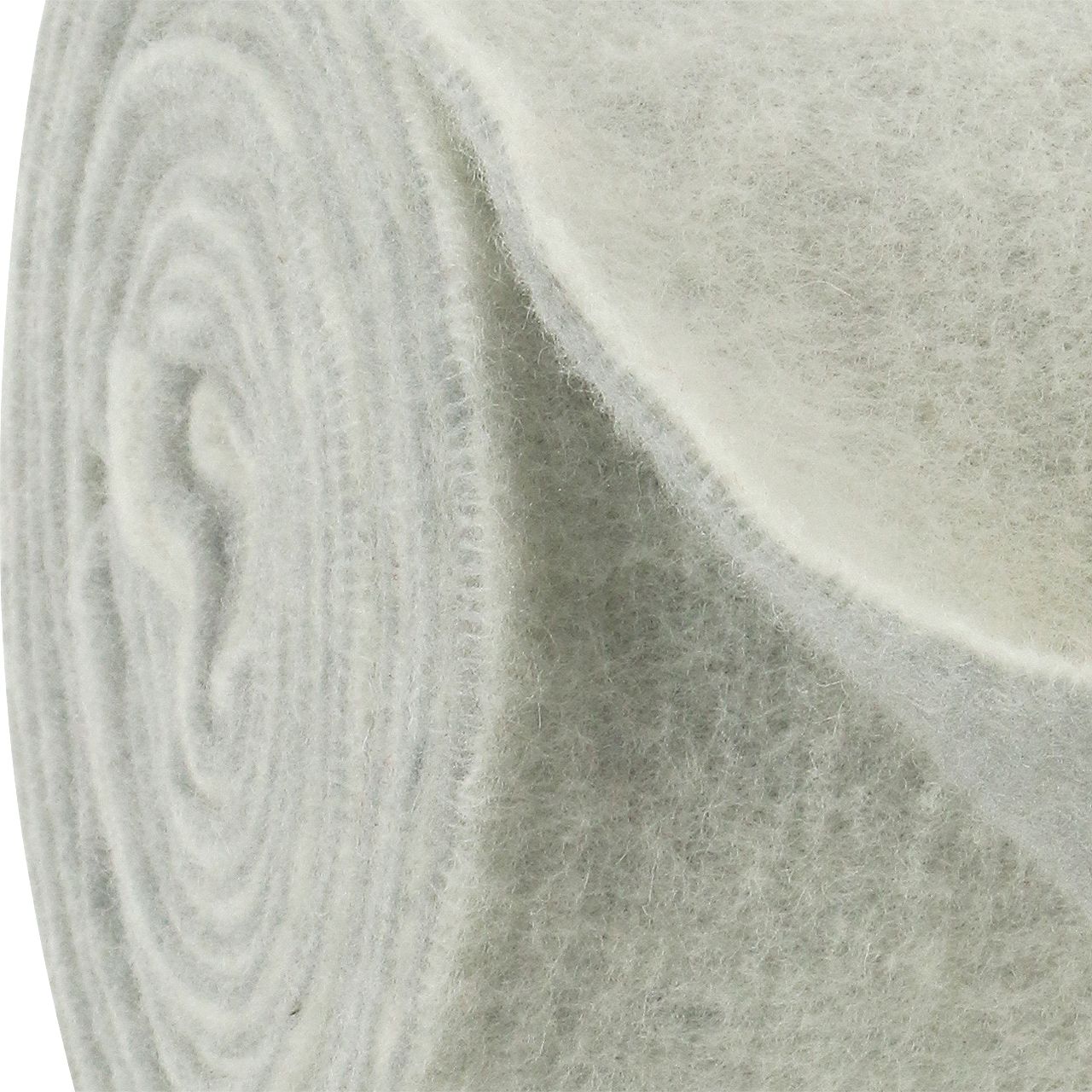 Lengden på tofarget filtbånd i grått og hvitt er omtrent 5 meter; bredden er omtrent 15 centimeter. Dekorasjonsbåndet er laget av 100% ull.