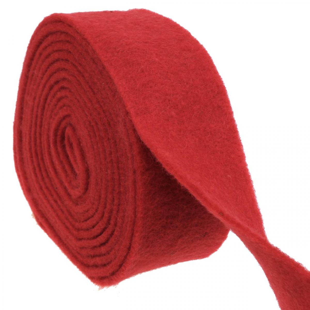 Filtbåndet i rødt leveres som en rull med en lengde på ca. 5 meter og en bredde på ca. 7,5 centimeter.