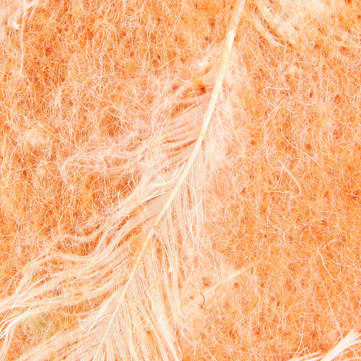 Ekte gåsefjær er vevd inn i ullbåndet. Med sin naturlige, lyse hvite gir fjærene en fantastisk aksent av friskhet til det dekorative stoffet. Og denne ullfilten er også en attraktiv forkledning eller borddekorasjon for sommeren.