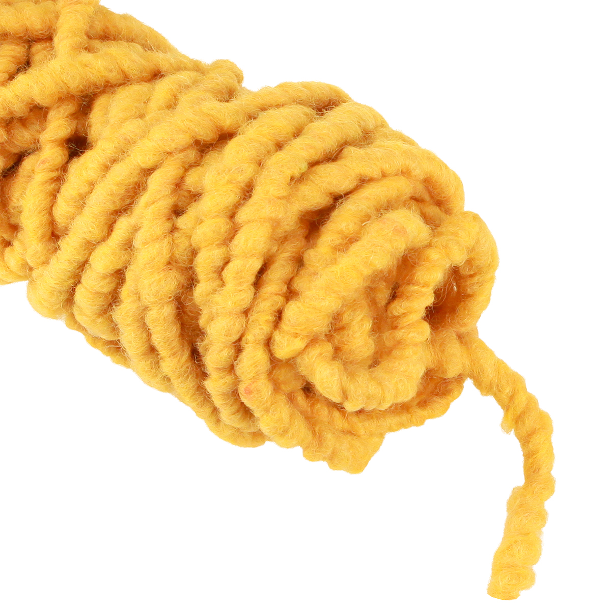 Den gulgule filtsnoren "Flausch Mirabell" består av 42% jute og 58% saueull. Den vil bli levert til deg med en tykkelse på ca. 10 millimeter og en lengde på ca. 25 meter i en plastfilm.