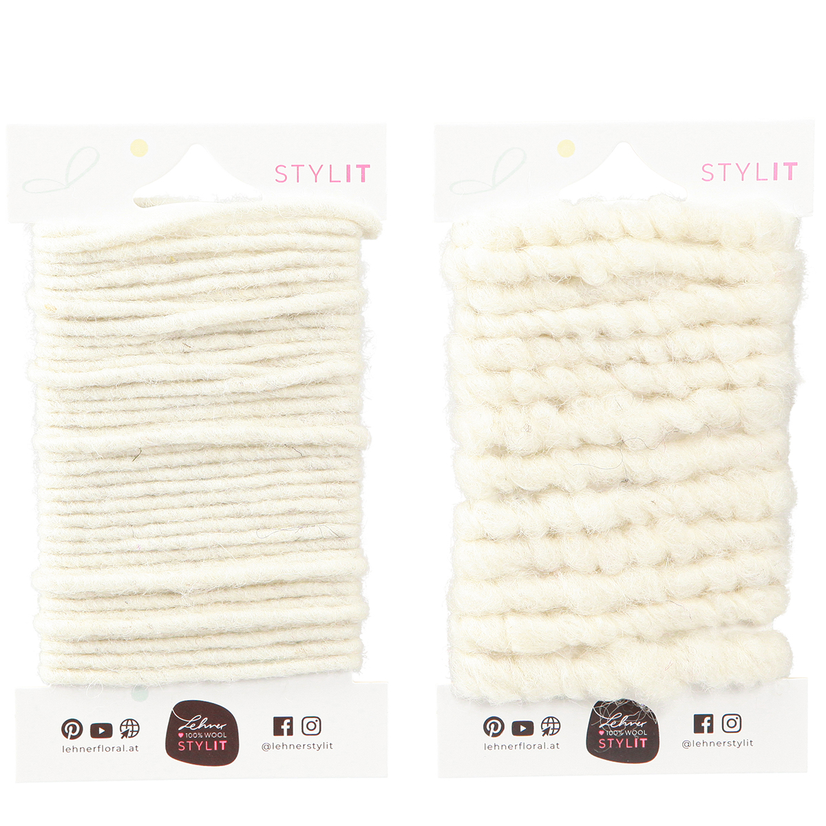 For håndverkselskere og kreative mennesker som leter etter materialer av høy kvalitet for å realisere ideene sine, er vårt sett med 2 laget av filtsnor og veketråd akkurat tingen. Disse ledningene er laget av 100 % naturlig materiale og er ideelle for alle dine håndverksprosjekter og dekorasjonsarbeid. Den hvite, myke filten gir hvert prosjekt en tidløs eleganse og holdbarhet.
