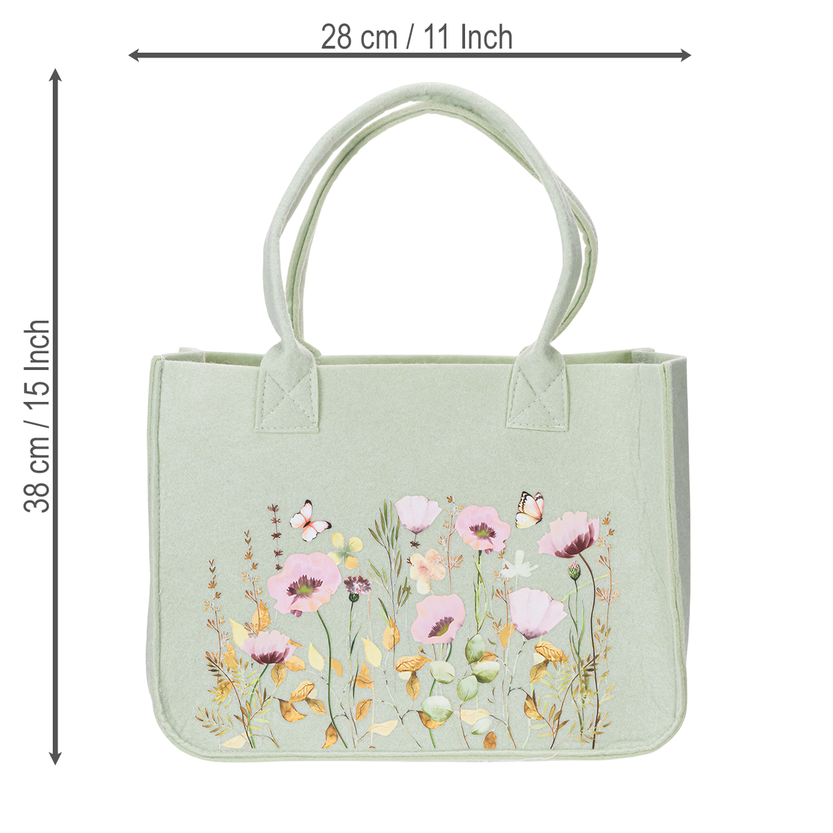 Vår blomstrete filtveske er ikke bare en hvilken som helst håndveske. Den imponerer med sitt naturlige design, robuste materiale og multifunksjonalitet. Med sine generøse mål på 38 cm høye, 28 cm lange og 15 cm brede, tilbyr den den perfekte balansen mellom plass og komfort. Enten det er bøker, shopping, en bærbar PC eller til og med et piknikteppe – alt har sin plass. Takket være de solide filtstroppene kan vesken bæres komfortabelt over skulderen.