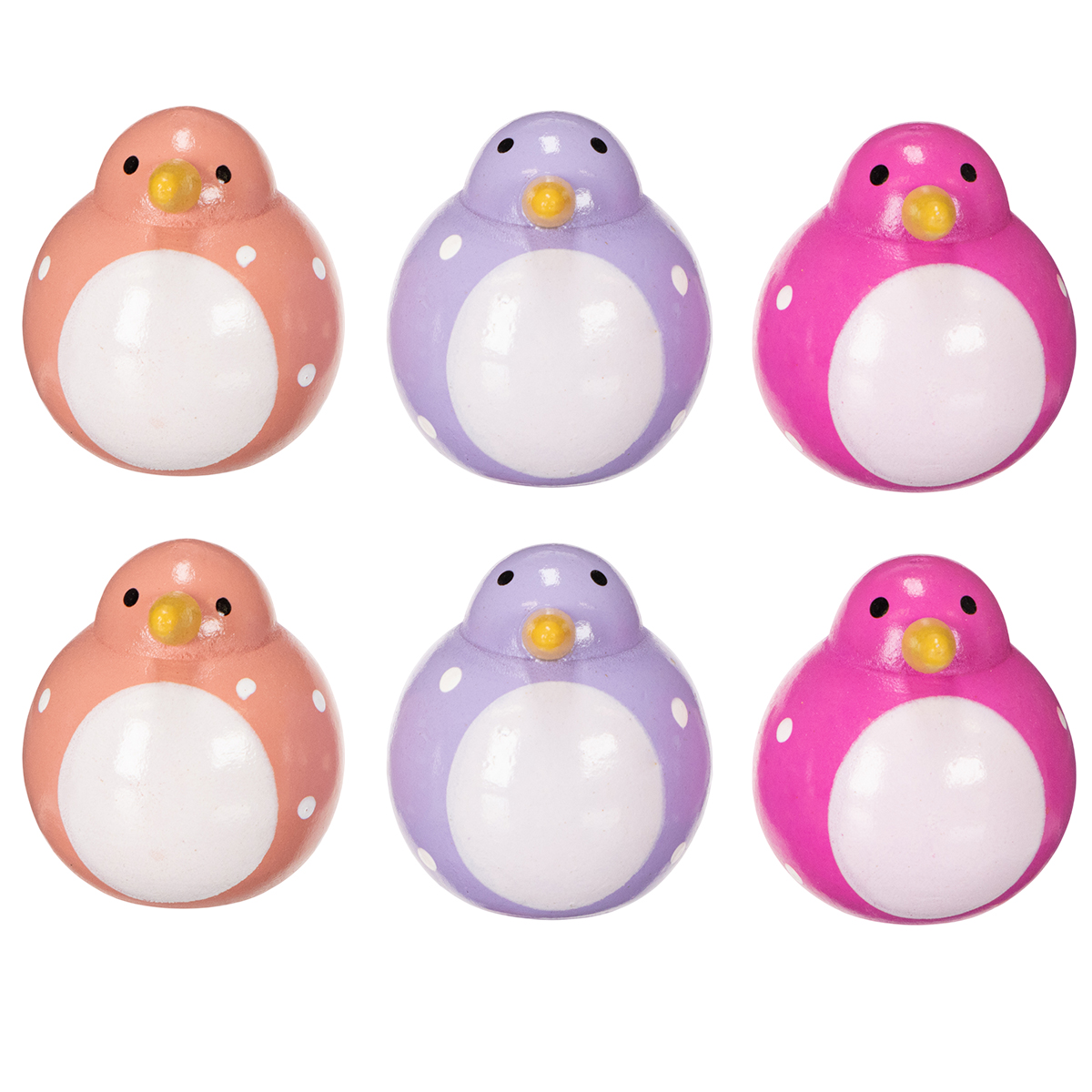 Fuglefigur med prikkete mønster som et friskt og vennlig romdekor, lilla, 6 cm, 6 stk.
