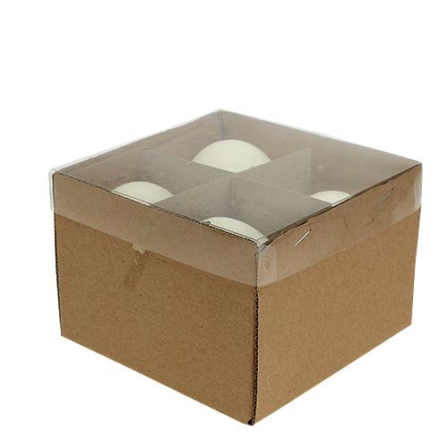 De hvite gåseggene er pakket i en eske med 4 og er omtrent 7 centimeter store. Med litt håndverk kan du også lage uvanlige blomstervaser av de dekorative eggene. Bruk det lille hullet og utvid det forsiktig og legg noen nellik, påskeliljer eller til og med en hibiskus der inne. Nå trenger du fortsatt en ideell holder, og du kan inspirere familie og venner med dette blomsteroppsettet.
