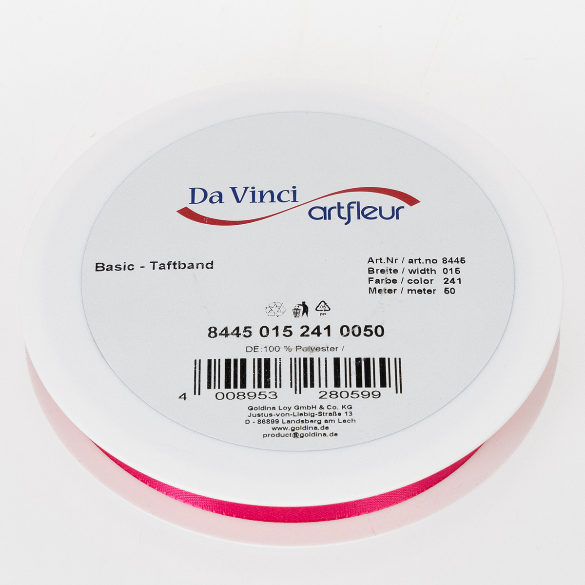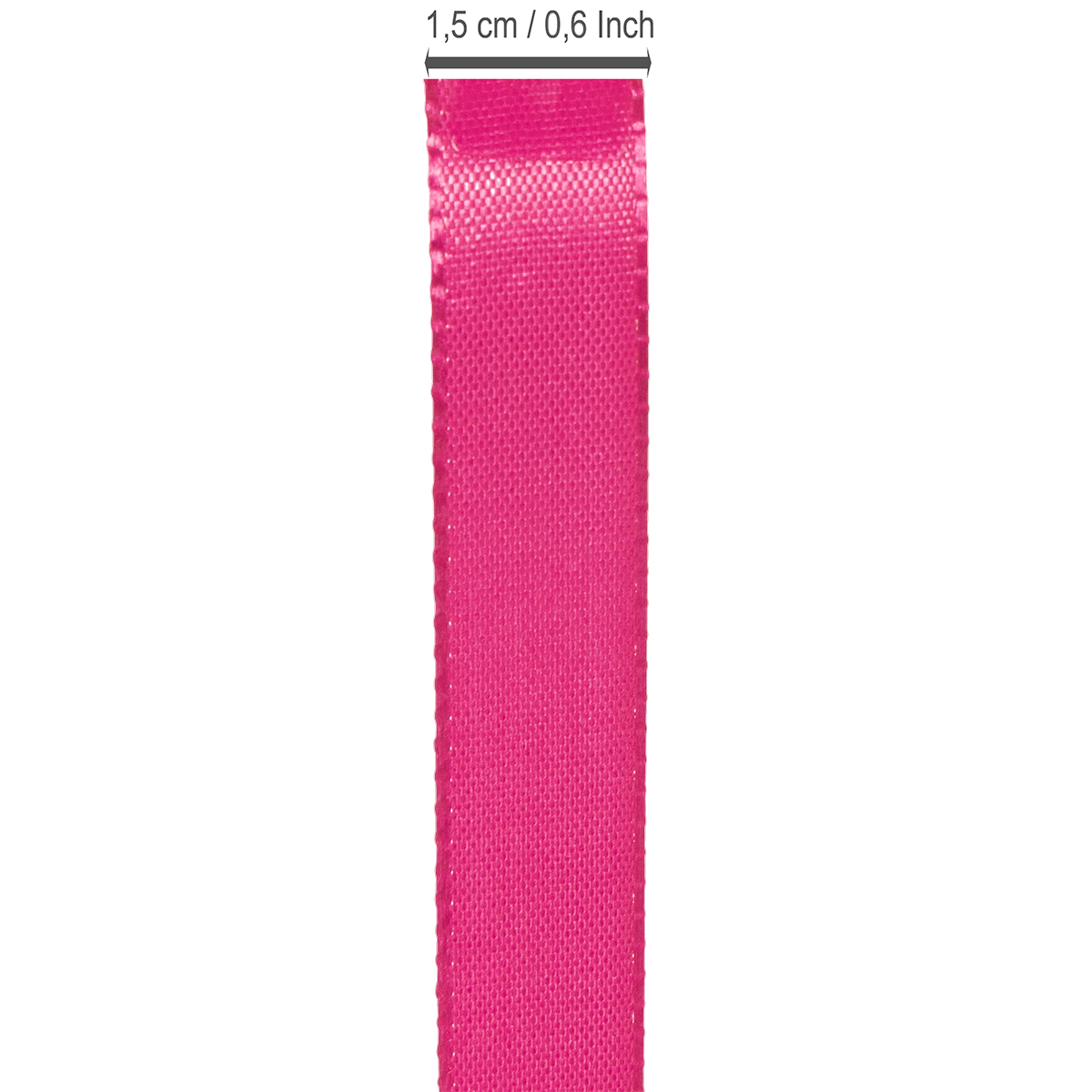 Det rosa gave- og dekorasjonsbåndet måler rundt 15 millimeter i bredden og rundt 50 meter i lengden. Den består av 100% polyamid og leveres til deg på en plastrulle.