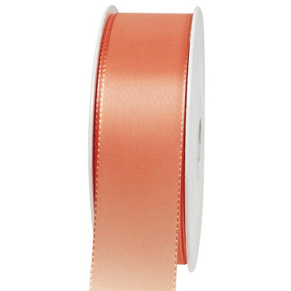 Gave- og dekorasjonsbåndet i aprikos, som er laget av 100 % polyester, måler omtrent 50 meter i lengden, uavhengig av bredden. Den kommer på en praktisk plastsnelle som enkelt kan festes til en dispenser.