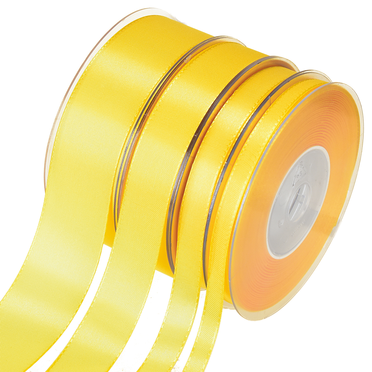 Fullfør sommerens blomsteroppsatser med denne skinnende gaven og dekorasjonsbåndet i gult! På grunn av den lyse fargen, passer det fine dekorative båndet til nesten alle blomstrende blomster tidlig og sommer, slik at du kan pakke satengbåndet løst rundt et blomsterarrangement, en bukett eller til og med en blomsterpotte for å støtte blomstene. Du kan også kreativt dekorere rom og utstillingsvindusdekorasjoner hvis du knytter lange løkker fra båndet eller danner bølger og deretter plasserer dem der eller henger dem på en vegg.