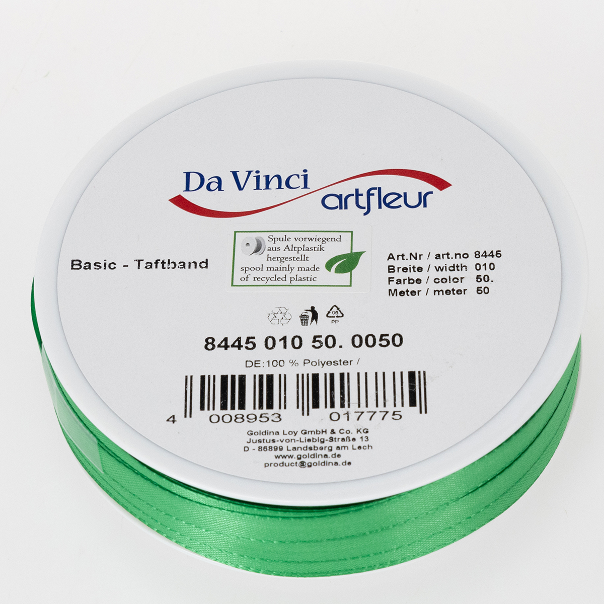 Produktnavn: Gave- og dekorasjonsbånd, grønt taftbånd, 10 mm bredt, 50 m langt