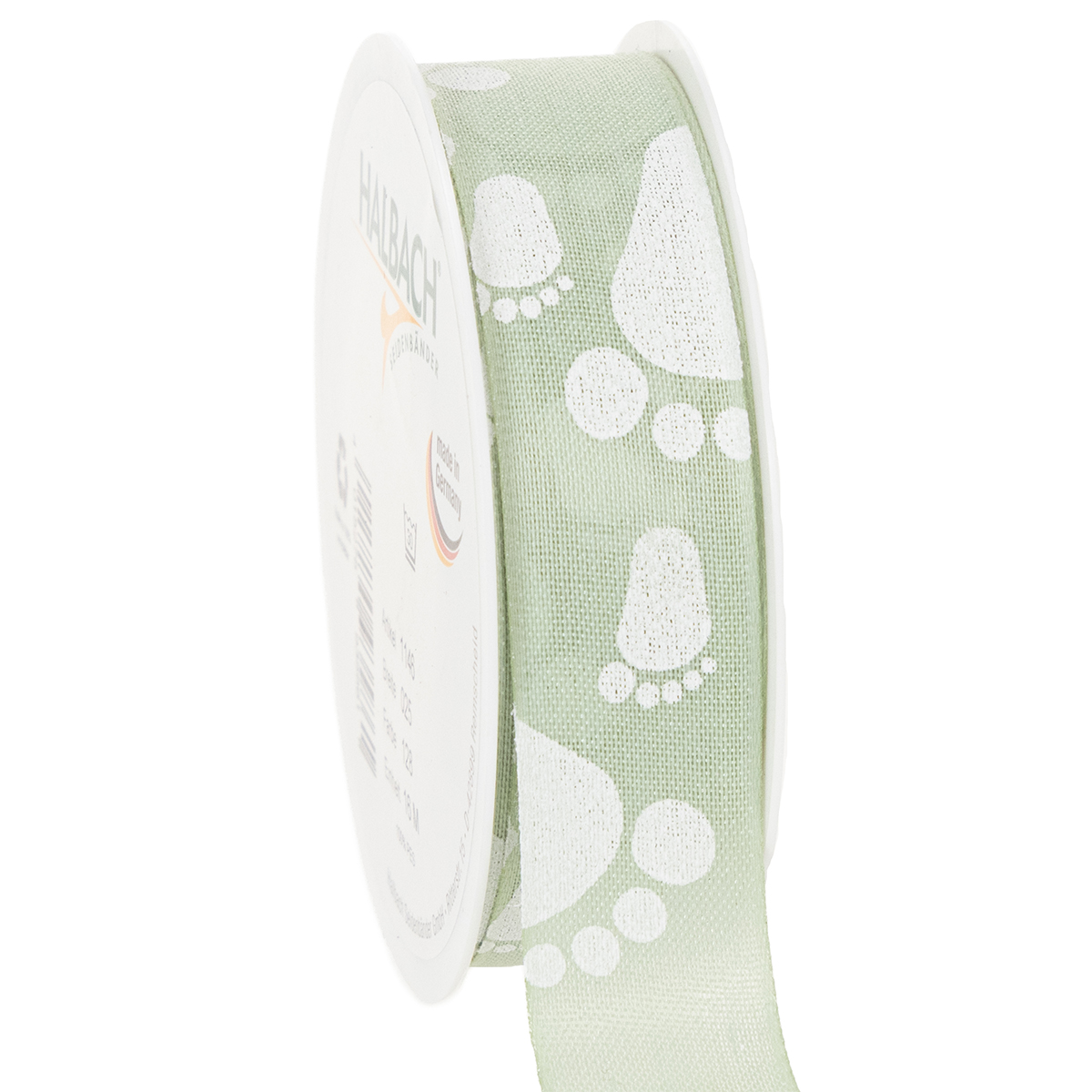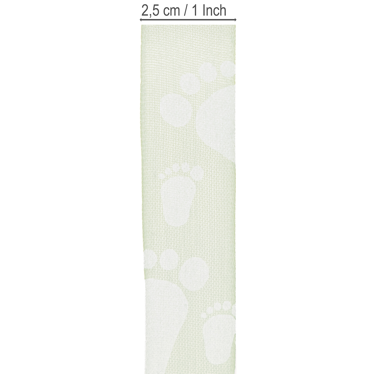 Gavebånd babyføtter dekorasjon dåp grønn 25mm 16m
