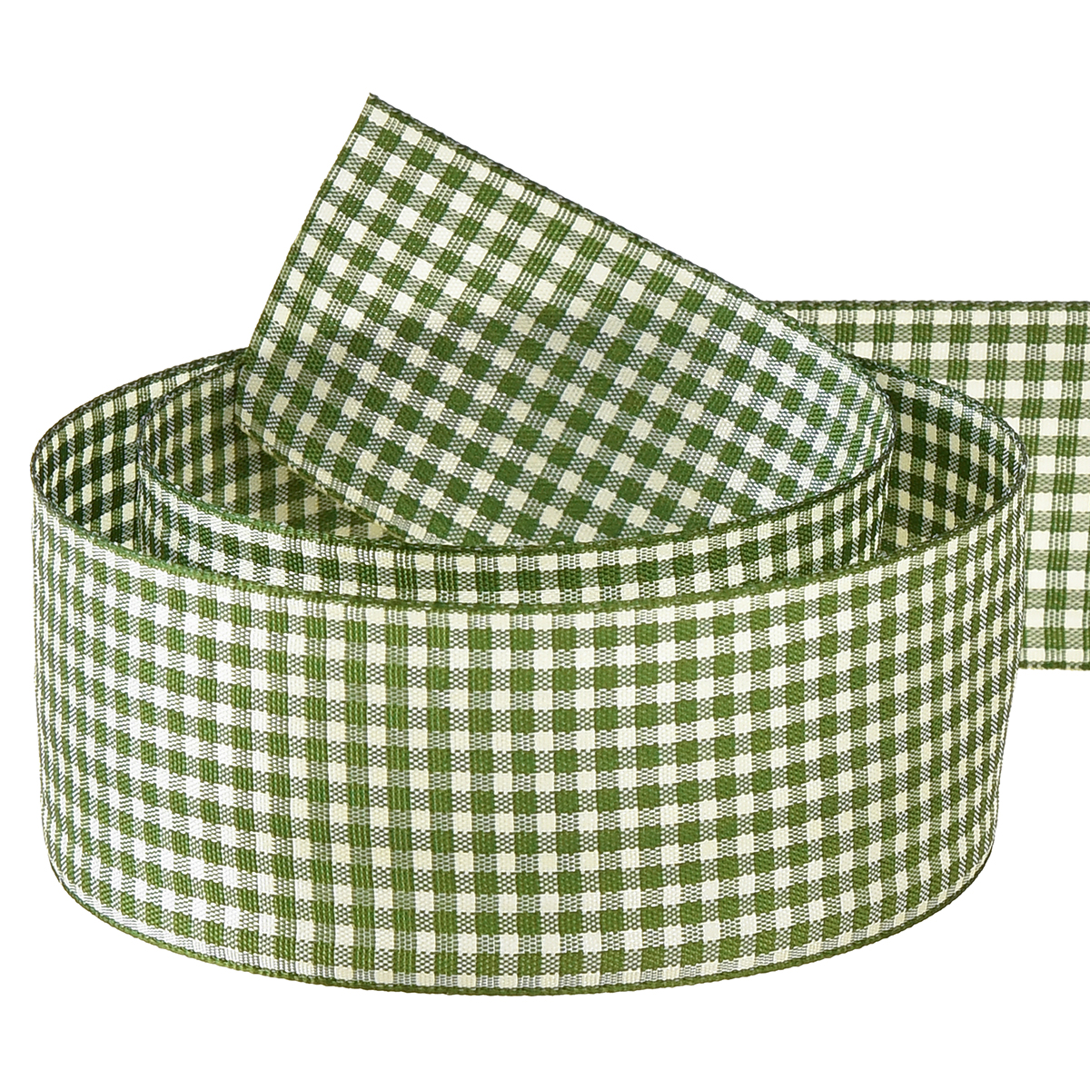 Gavebånd, dekorativt bånd, rutete, grønt og kremfarget, 40 mm bredt, 20 m langt