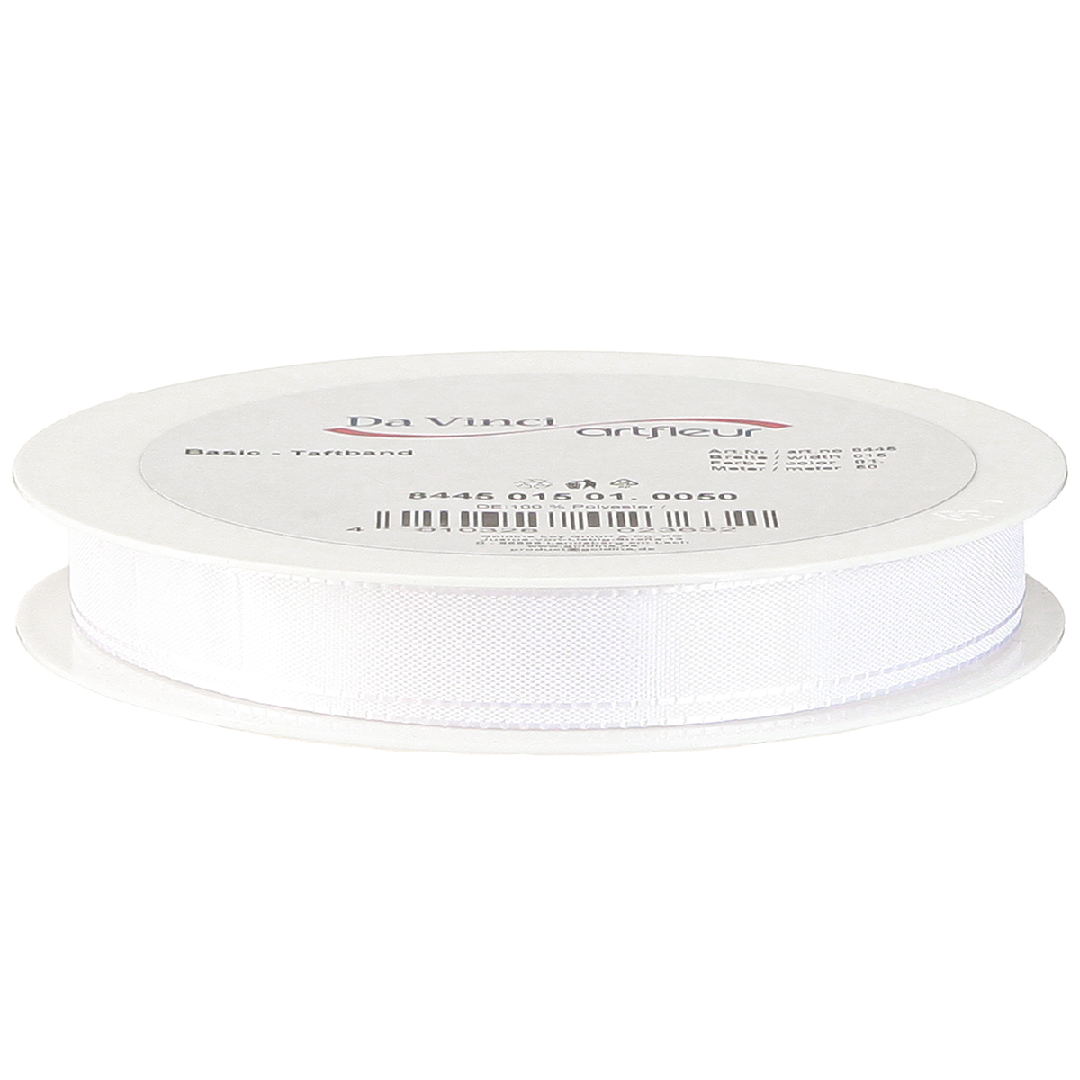 Gavebånd dekorativt bånd taftbånd hvitt 15mm 50m