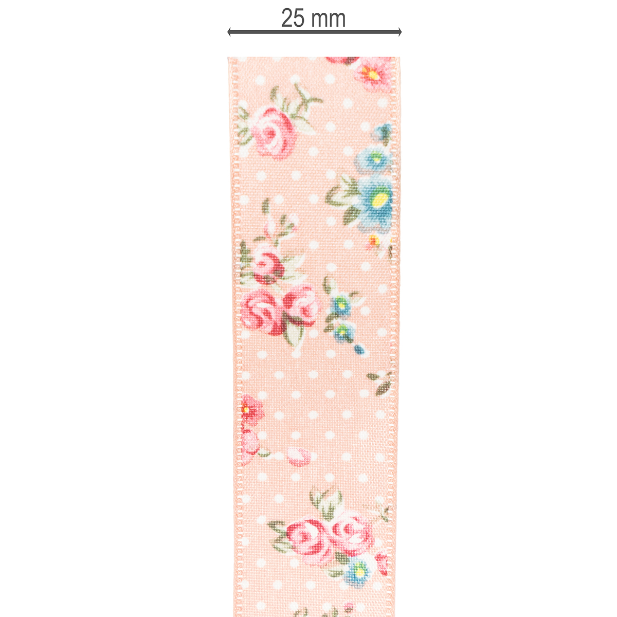 Produktnavn: Gavebånd med blomstermønster for lekne gaver og håndverk, 2,5 cm bredt, 15 m langt