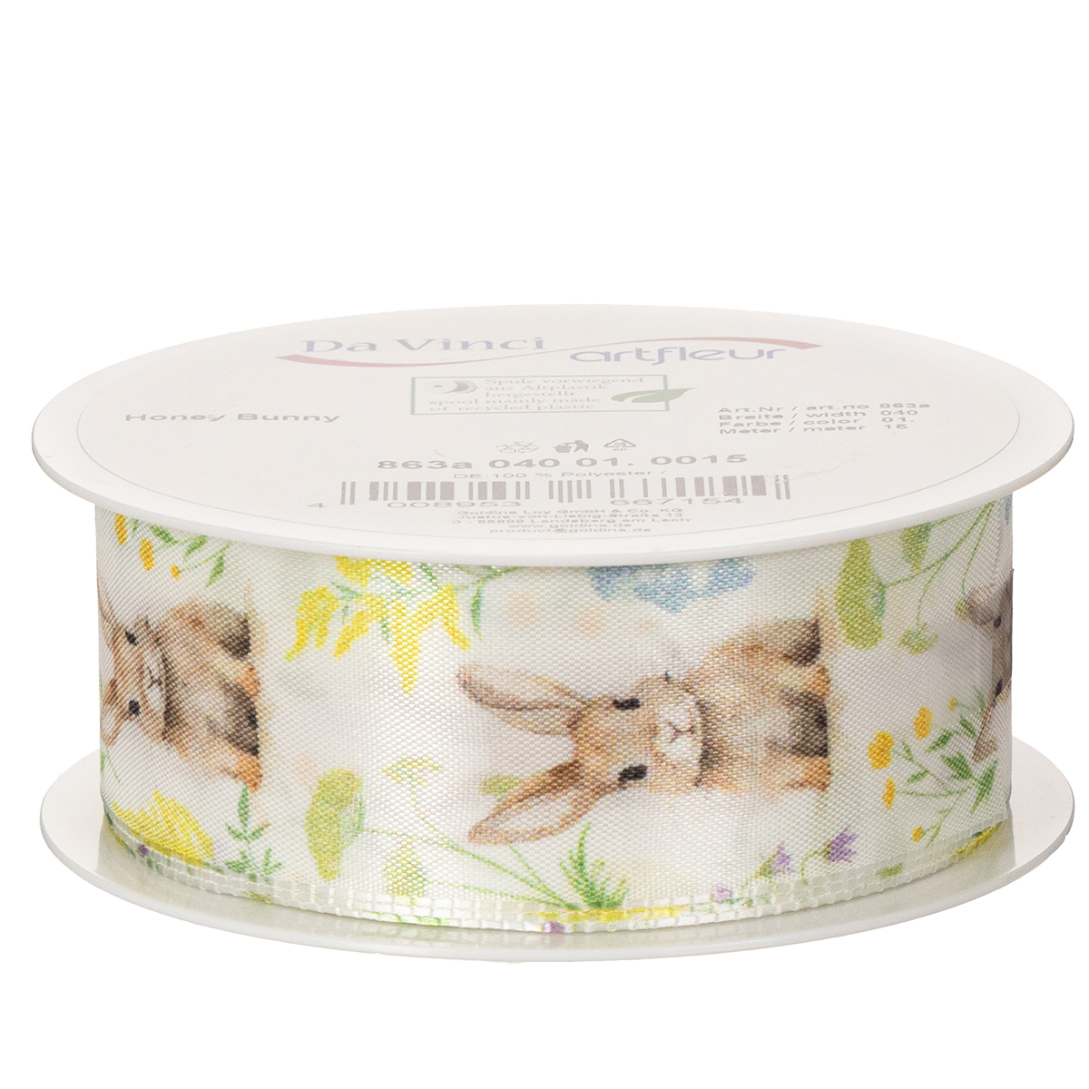 Påsketid – hvor herlig det er når solen sakte varmer opp, de første grønne skuddene dukker opp og høytiden med familie og venner nærmer seg. Men hvordan lager du virkelig spesiell emballasje som umiddelbart fremkaller vår og påske? Med vårt påskeharebånd blir selv den enkleste emballasjen et blikkfang! Dette båndet, med sitt sjarmerende haremotiv og delikate vårfarger som gult og hvitt, utstråler ren påskeglede. Enten det er til gaver, dekorative påskekurver eller som bordpynt – dette båndet fengsler ved første øyekast og inspirerer til gledelige påskeøyeblikk! Eller kanskje du planlegger et gjør-det-selv-prosjekt for å gjøre hjemmet ditt litt mer festlig? Da har vi det perfekte supplementet til din kreative ånd. Dette båndet er ikke bare et visuelt høydepunkt, men også fantastisk allsidig.