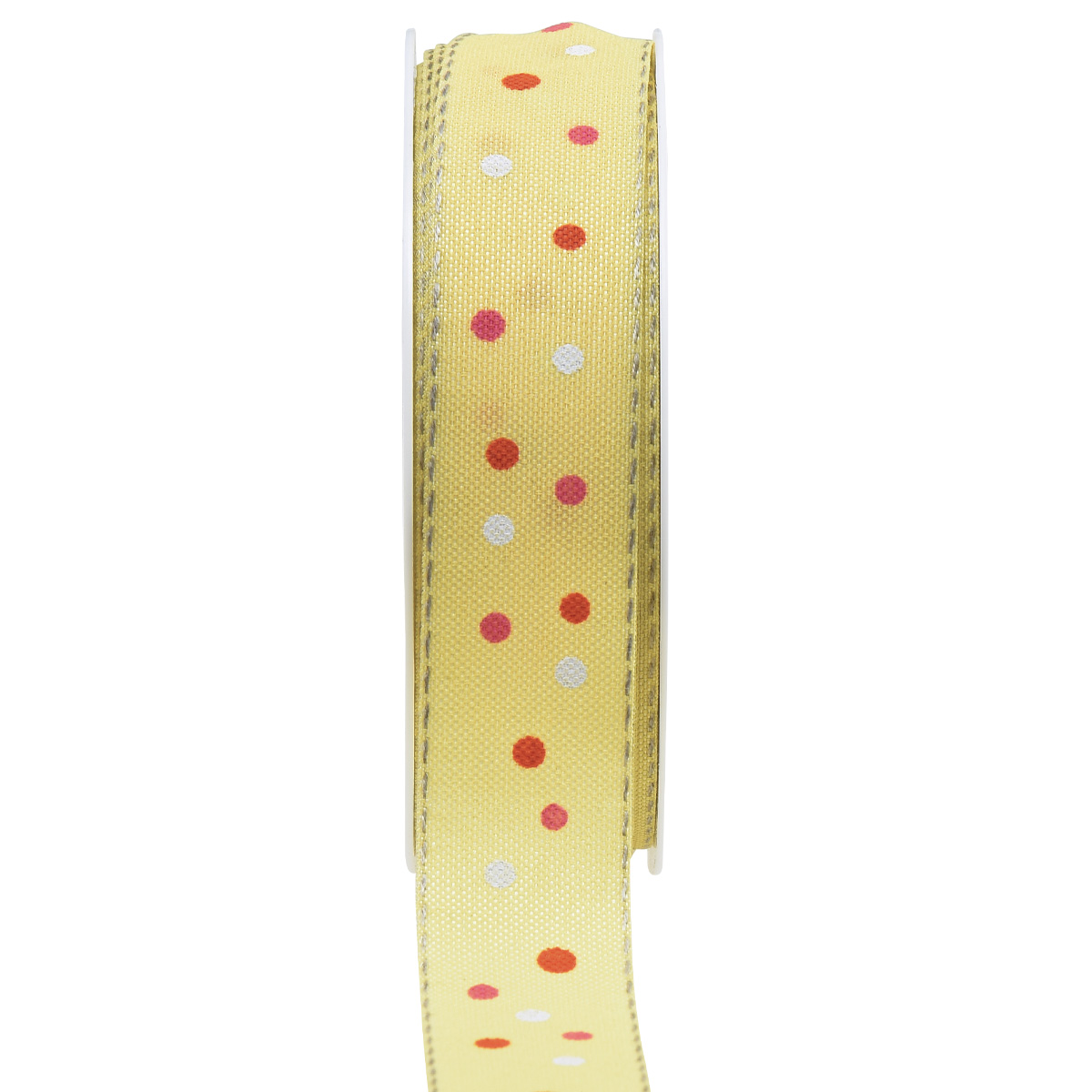Produktnavn: Gavebånd med prikker bånd gul 25mm 18m