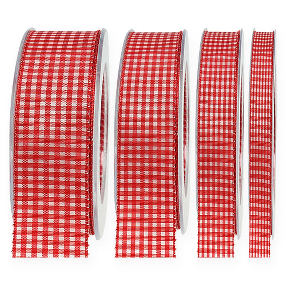 Det røde rutete gavebåndet med kant har en lengde på ca 20 meter og er viklet på en plastrull. Du kan fleksibelt velge bredden øverst til høyre og tilpasse det respektive båndet til ideen din.