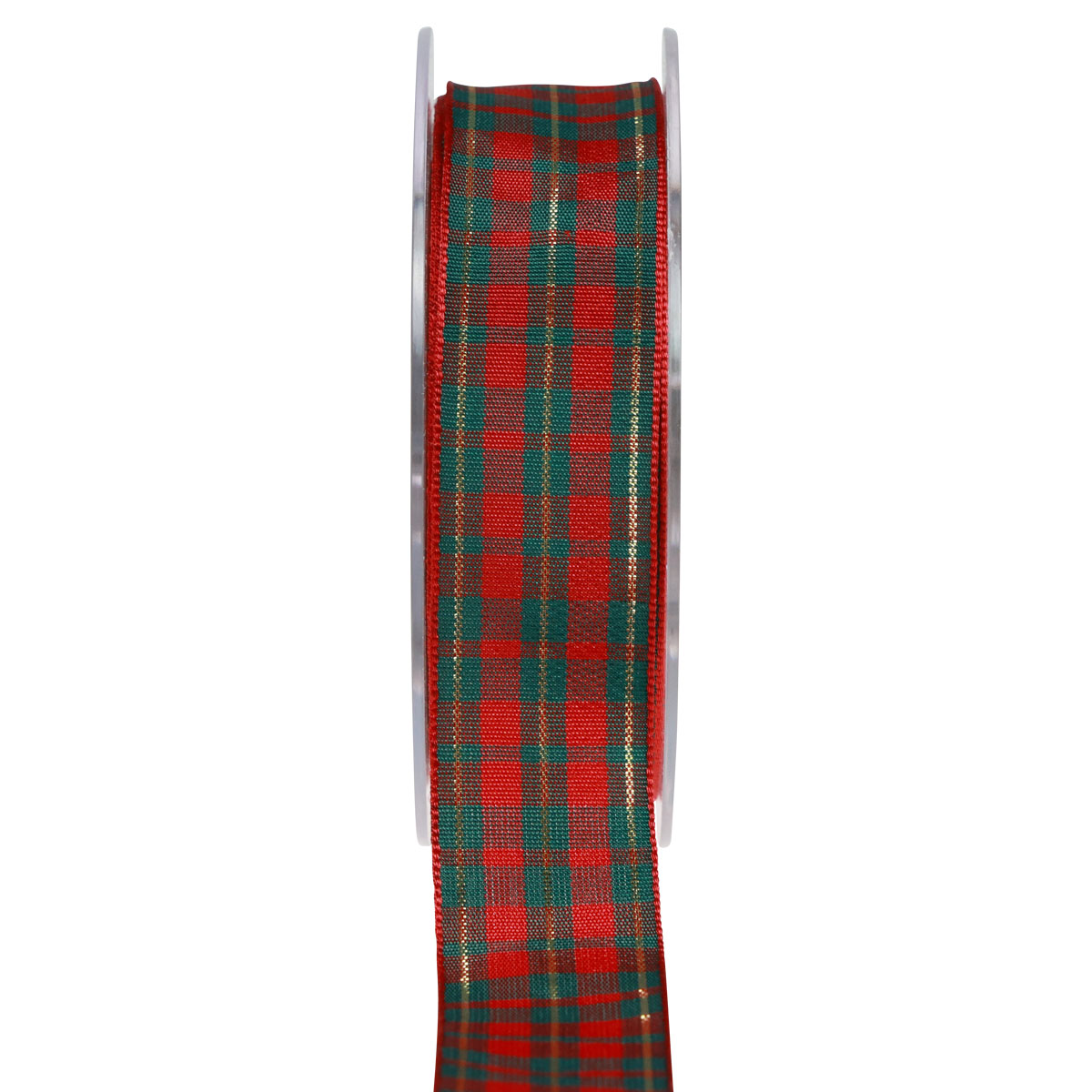 Gavebånd rutete stoffbånd rød grønn skotsk 25mm 20m