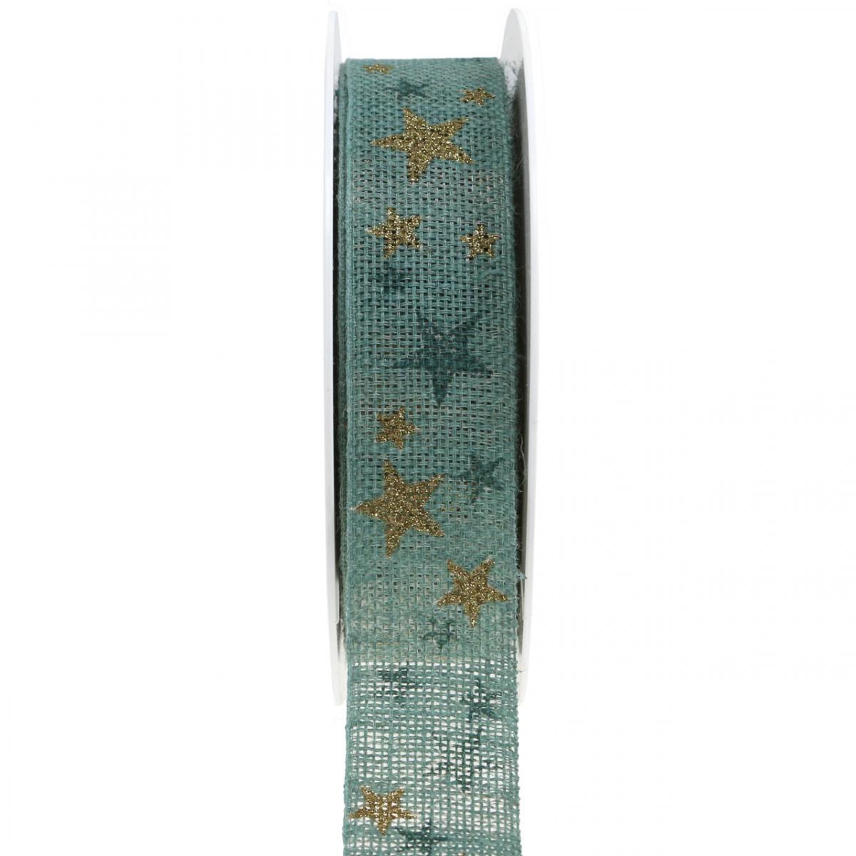 Gavebånd sløyfebånd med stjerner blågull 25mm 15m