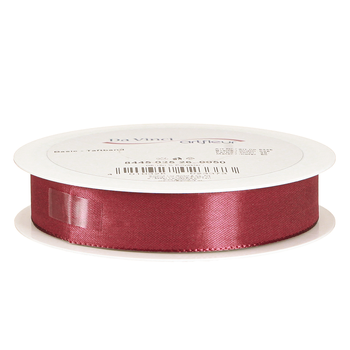 Med en bredde på omtrent 25 millimeter og en lengde på omtrent 50 meter leveres gavebåndet i 100 % polyester i Bordeaux til deg på en praktisk, flat plastspole.