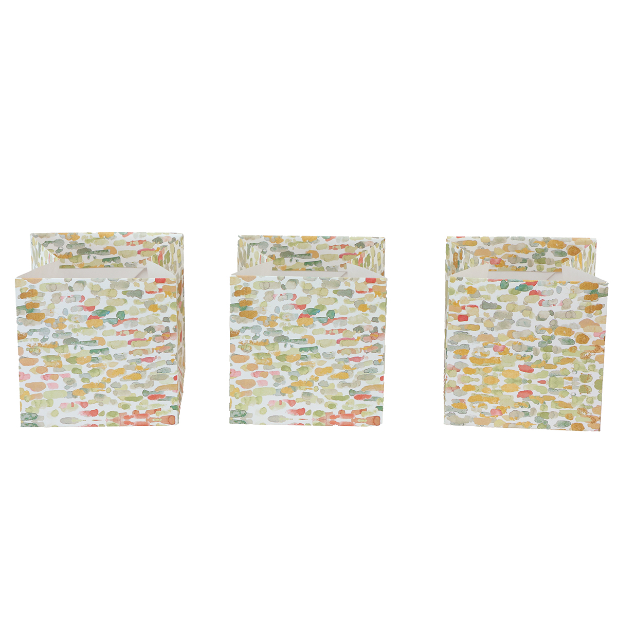 Se frem til et must-have for enhver anledning! Denne mønstrede gaveposen kan åpnes og brukes som plantepose eller gavepose. Det akvarelllignende prikkemønsteret i duse farger gjør gavene dine til et ekte blikkfang. Perfekt for dekoratører og blomsterhandlere, våre vesker skaper et ekteskap mellom kreativitet og funksjonalitet.