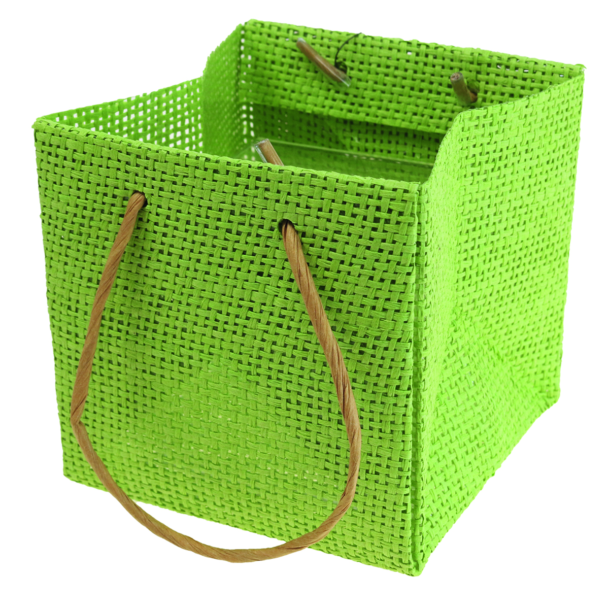 Gaveposer vevd med håndtak grønn, gul, lilla 10,5cm 12 stk