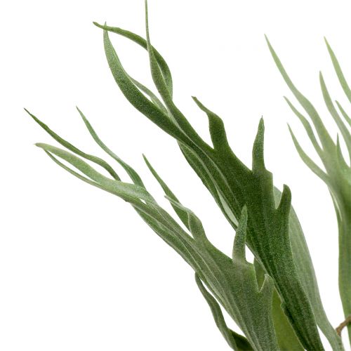 Et virkelig eksotisk blikkfang: Med sine to forskjellige bladtyper, de runde bladene i bunnen og de grønne bladene som et rådyrs gevir på pannen og de tilhørende luftrøttene, er dette Platycerium noe helt spesielt. Nå kan du sikkert forestille deg hvor bregnen fikk sitt betydningsfulle navn fra! Kommer fra polypod-familien, kan staghornbregnen finnes i tropiske områder. Denne kunstige kopien er utformet naturtro og er basert på originalen så autentisk som mulig.