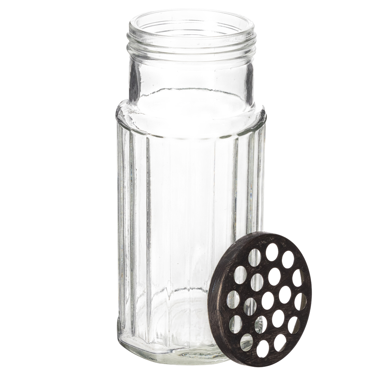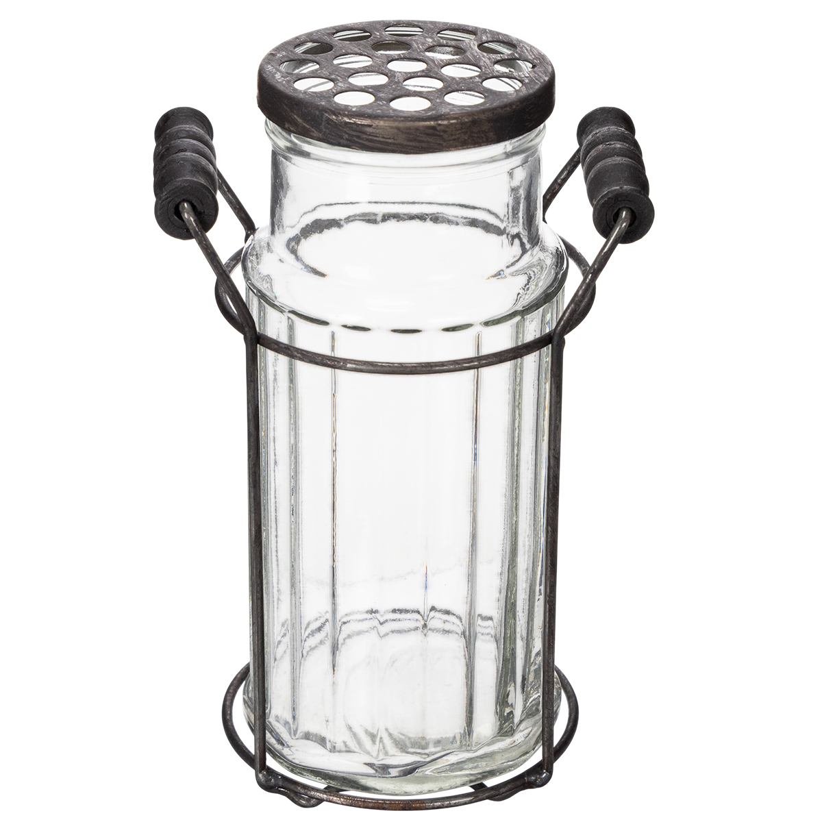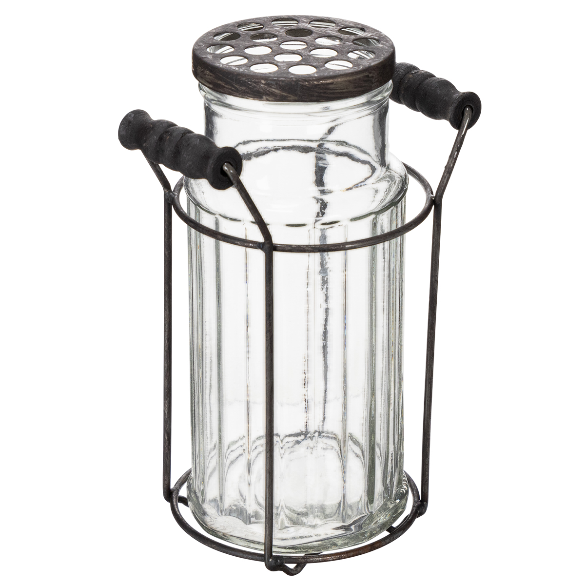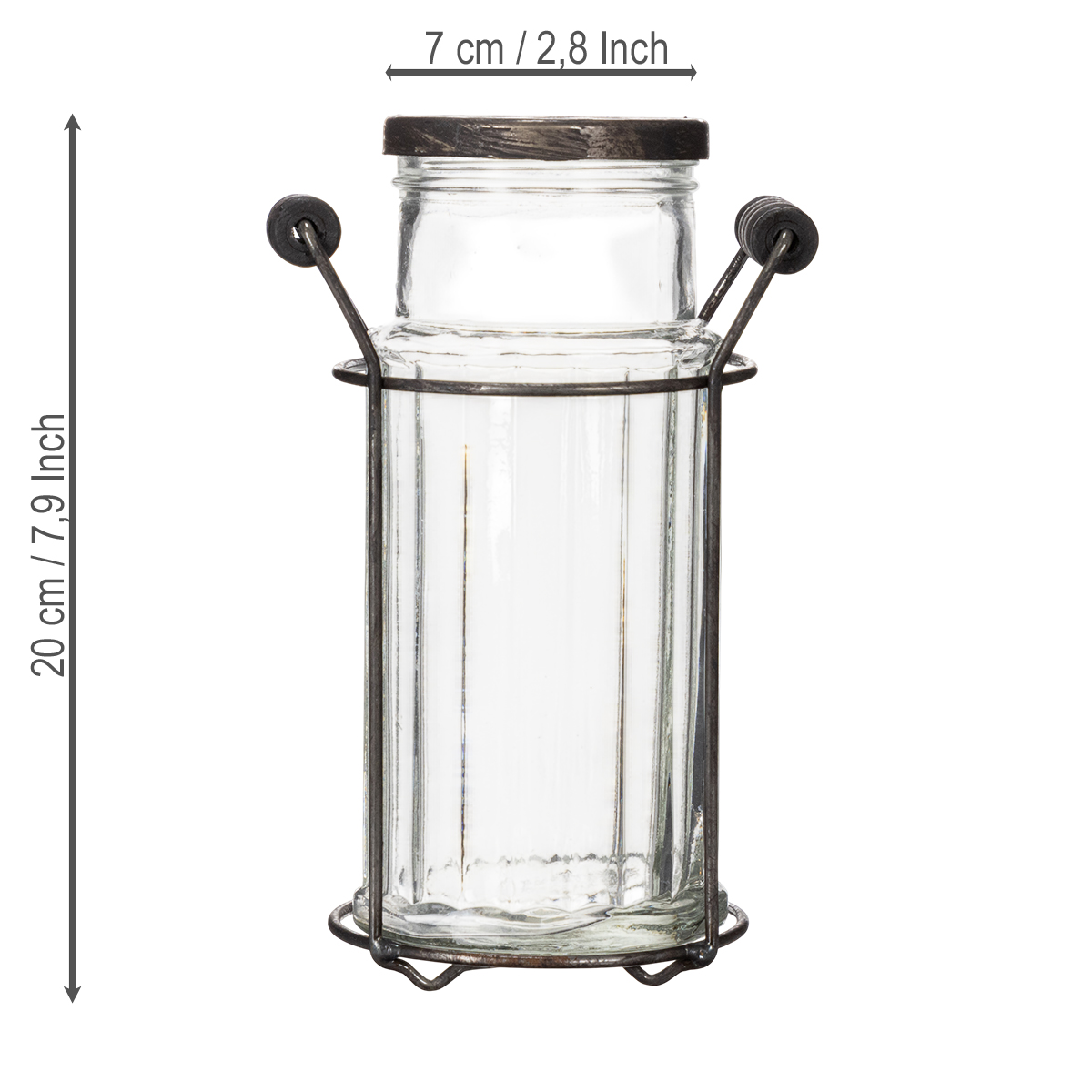Kombinasjonen av glass og metall gir et snev av industriell eleganse til hjemmet ditt, mens det delikate håndverket gir et klassisk blikkfang. Laget av høykvalitetsglass og en solid metallramme, imponerer denne flasken ikke bare visuelt, men også med sin holdbarhet. Lokket med sine små åpninger gjør den spesielt allsidig: bruk den som en vase til enkeltblomster, som en dekorativ kjøkkenredskapsholder eller til og med som en kreativ lysestake. Enten i stuen, kjøkkenet eller gangen – denne glassflasken finner sin plass hvor som helst.
