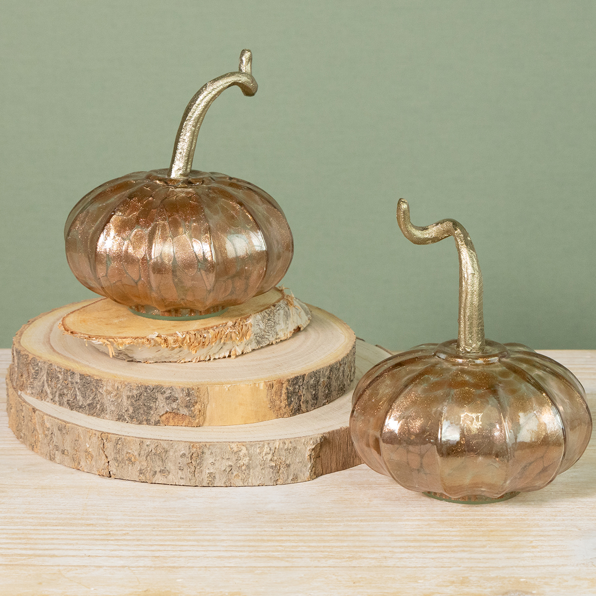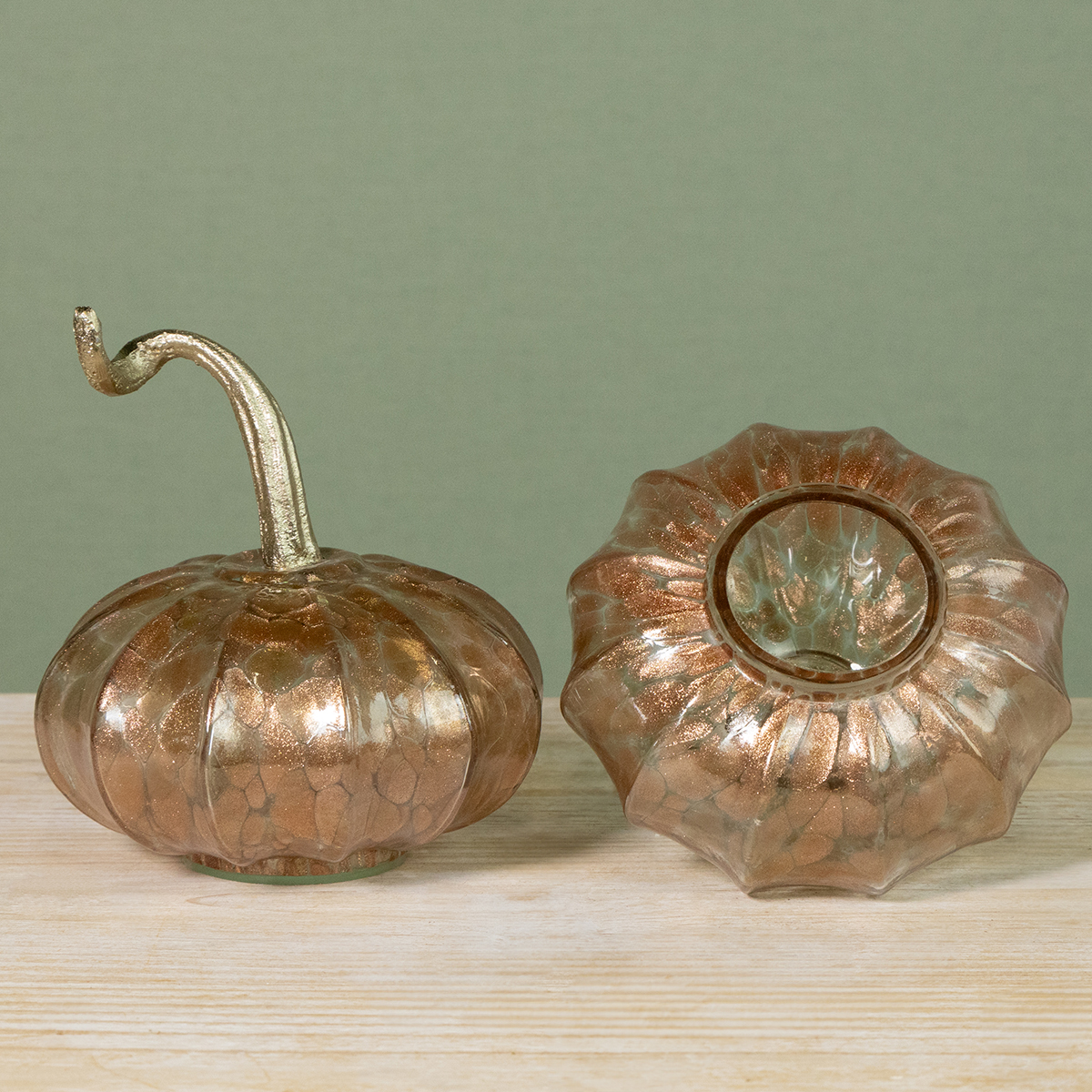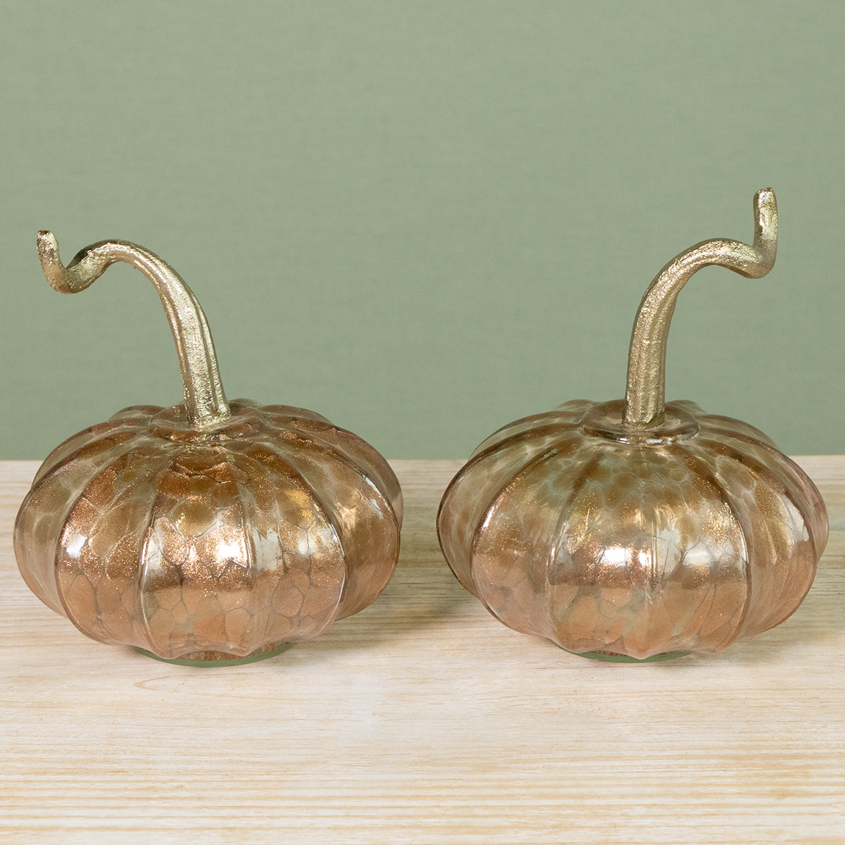 Glassgresskarborddekorasjon, høstgresskar, glass og metall, 14 cm høy, 2 stk.