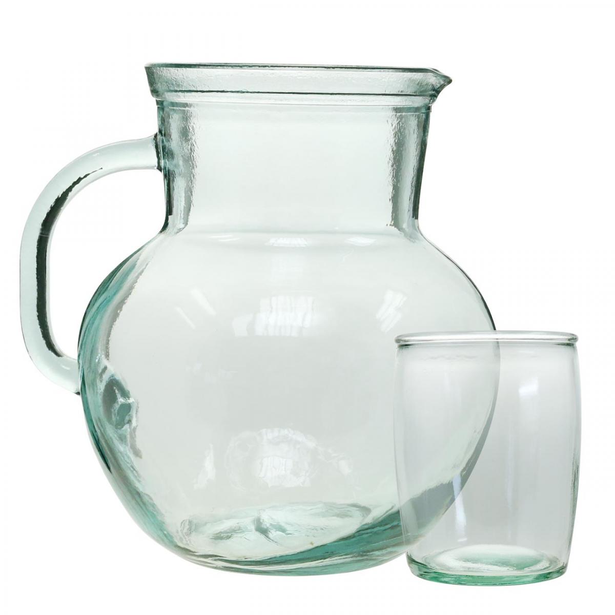 Glasskanne med drikkeglass, drikkesett for servering blåaktig klar H20cm/11,5cm 5 stk.