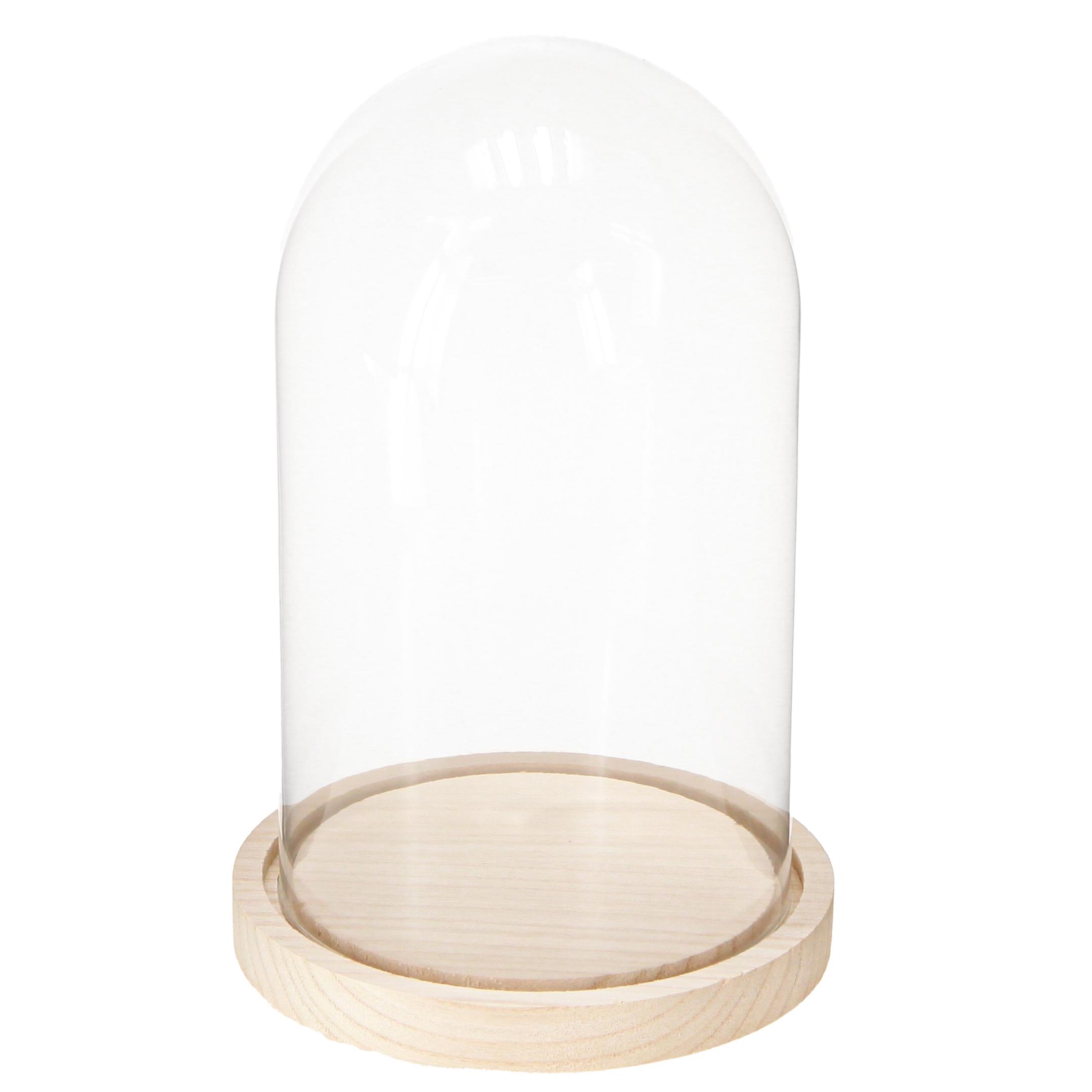 Glassklokken med trebunn er mer enn bare et dekorativt tilbehør. Den fungerer som stilig beskyttelse for dine delikate gjenstander og samleobjekter. Med en diameter på ca 17 centimeter og en høyde på ca 24 centimeter passer den perfekt på enhver skjenk eller i vitrineskapet.