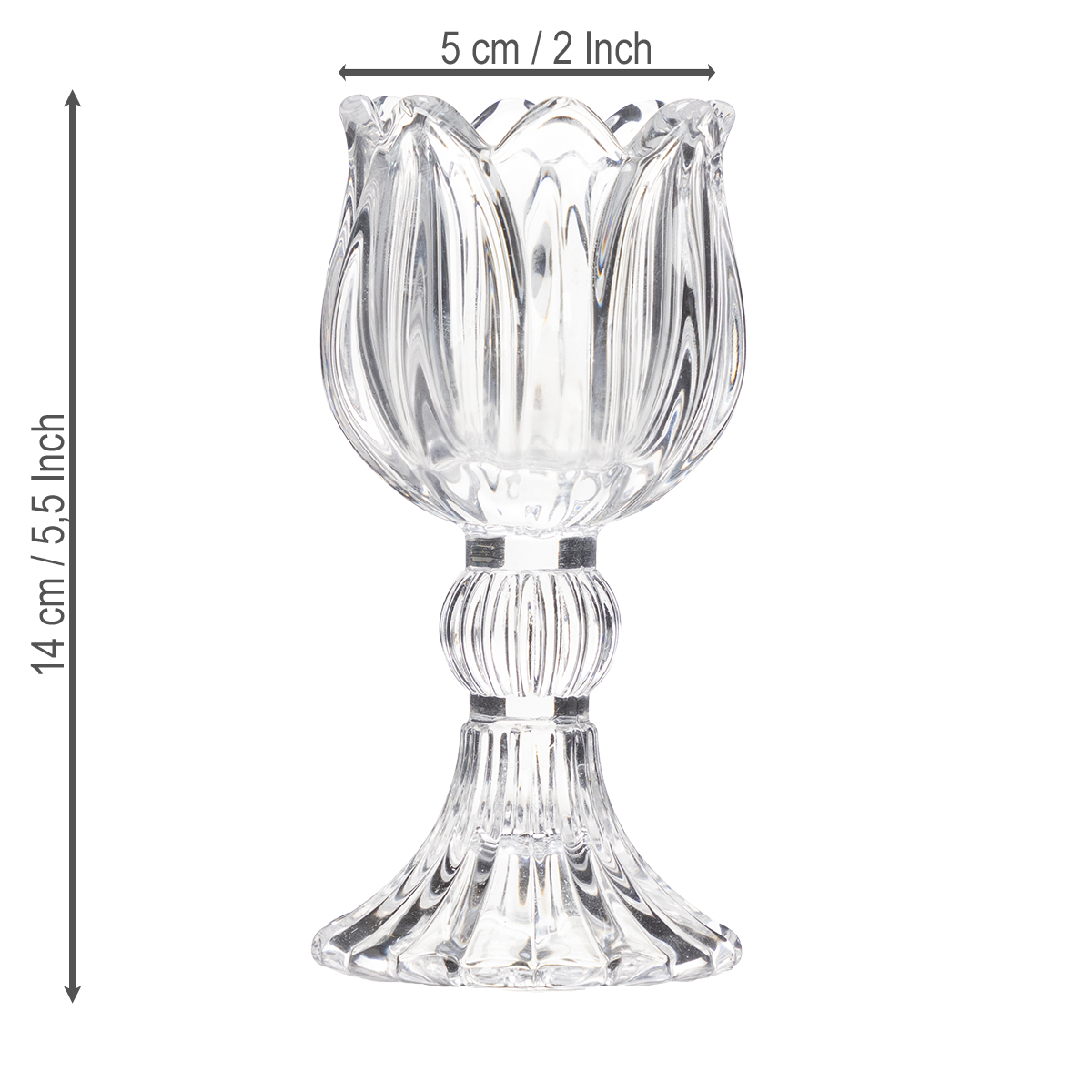 Disse glasslysestakene med blomstermønster imponerer ikke bare med sin visuelle appell, men også med sin allsidighet. Laget av gjennomsiktig glass av høy kvalitet, reflekterer de levende lyset vakkert og skaper et fengslende samspill mellom lys og skygge. Enten du bruker dem til en romantisk middag for to, som iøynefallende dekorasjoner til et elegant middagsselskap eller som stilige detaljer i en bryllupsfest – de passer alltid perfekt.