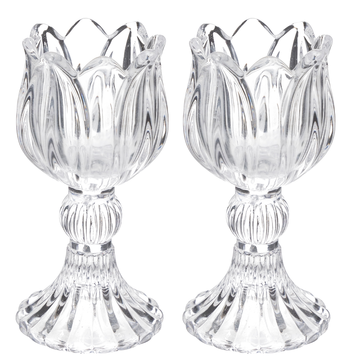 Glasslysestaker med blomstermønster for elegant borddekorasjon, 14 cm, 2 stk.