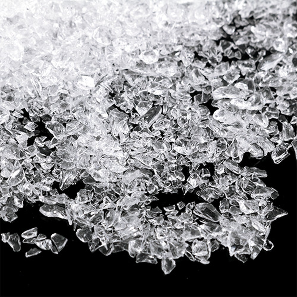 Glasssteinene i sin transparente naturlige farge leveres i en pose som veier totalt 2 kilo. De enkelte steinene kan være mellom 1 og 2 millimeter store.