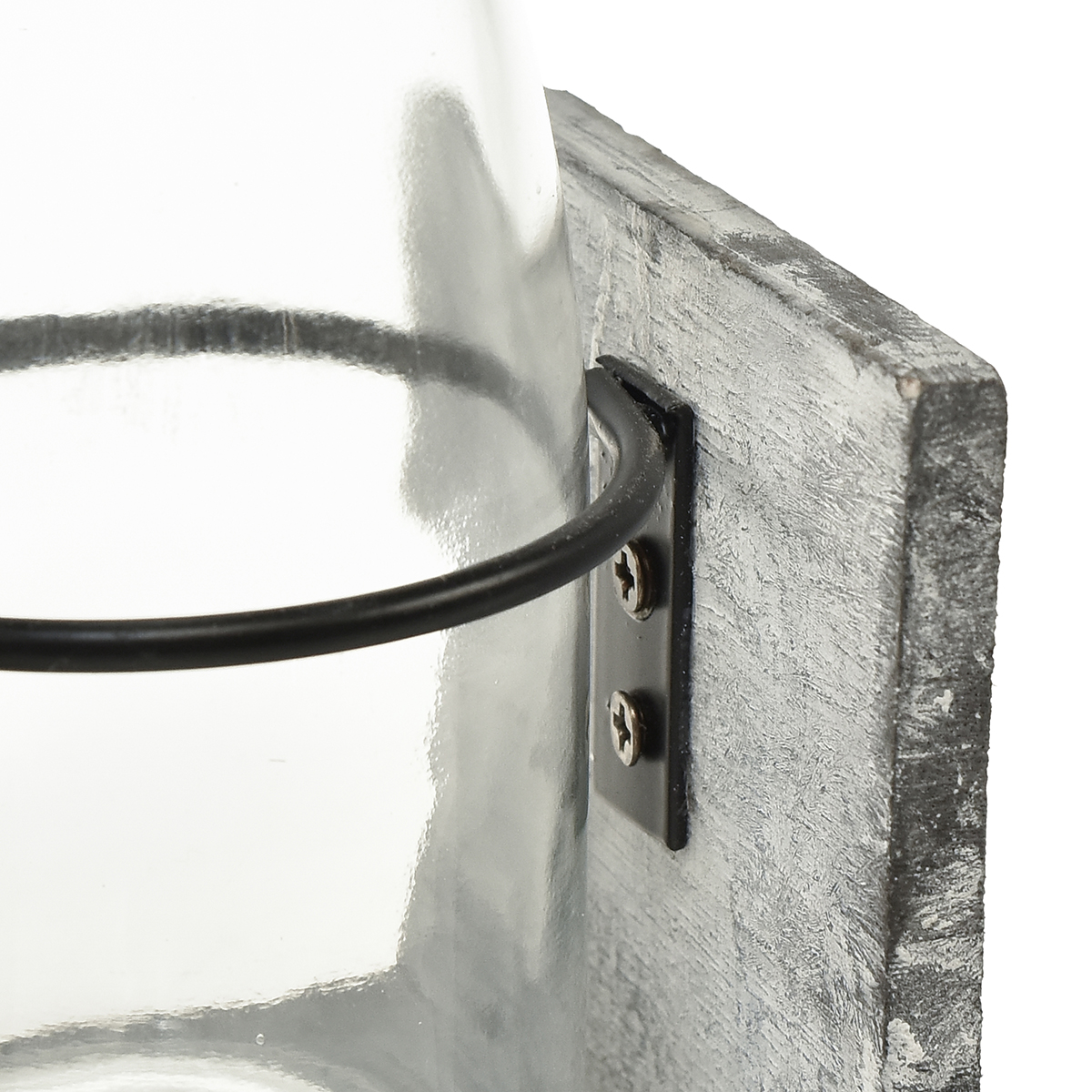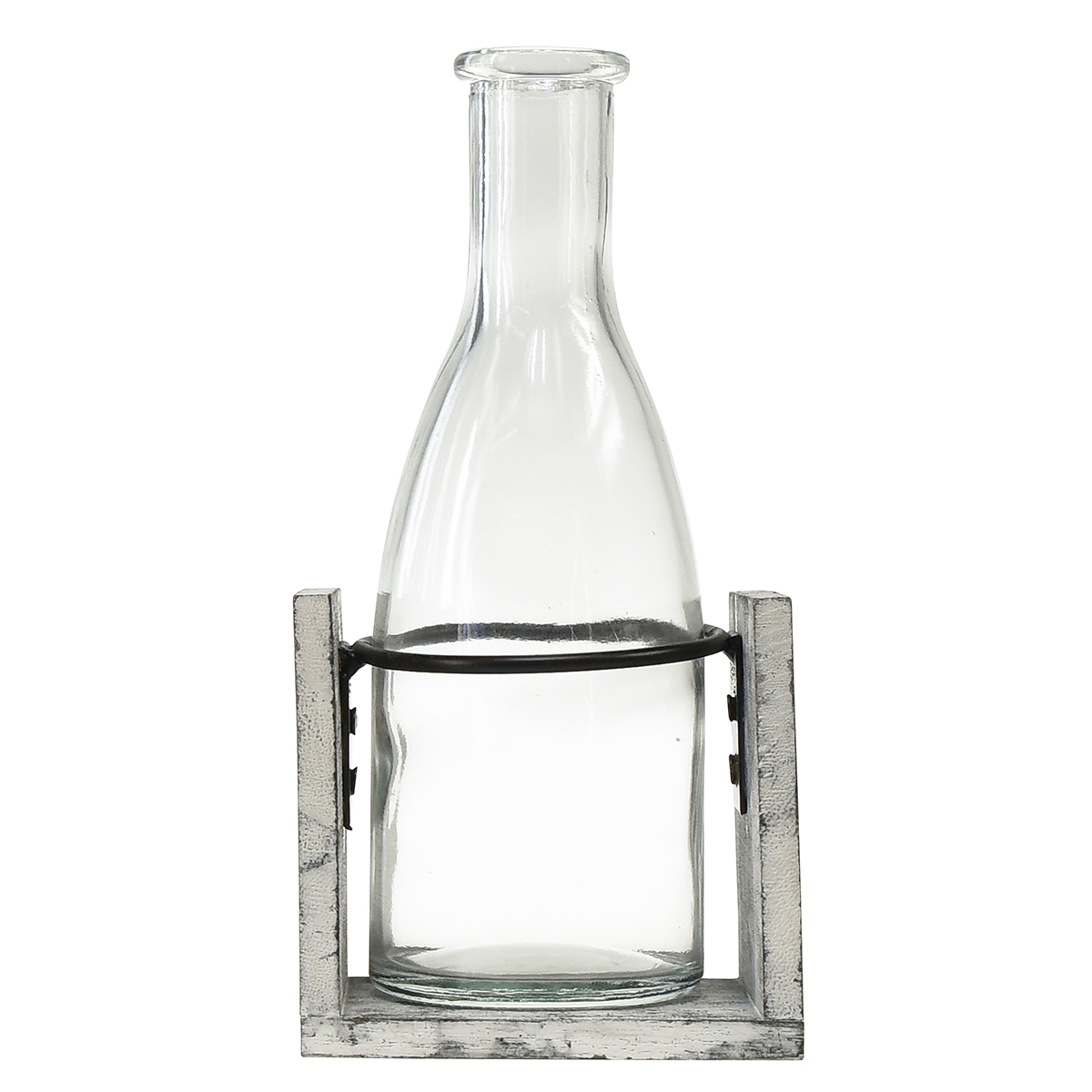 Glassvase i grått trestativ, 9,5x8x20cm - Rustikk dekorasjon med 4 flasker