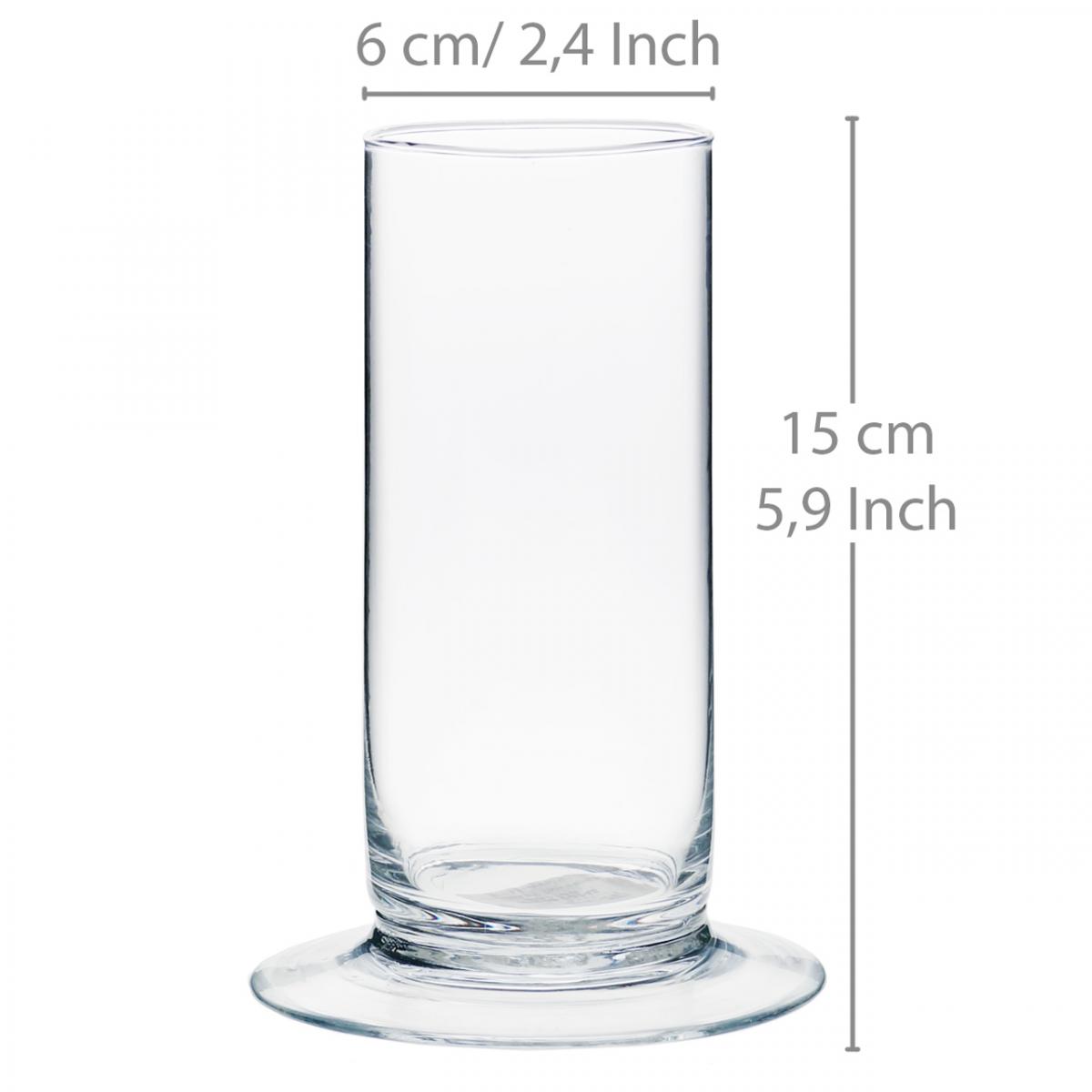 Glassvase med base, klar, Ø6 cm, H15 cm