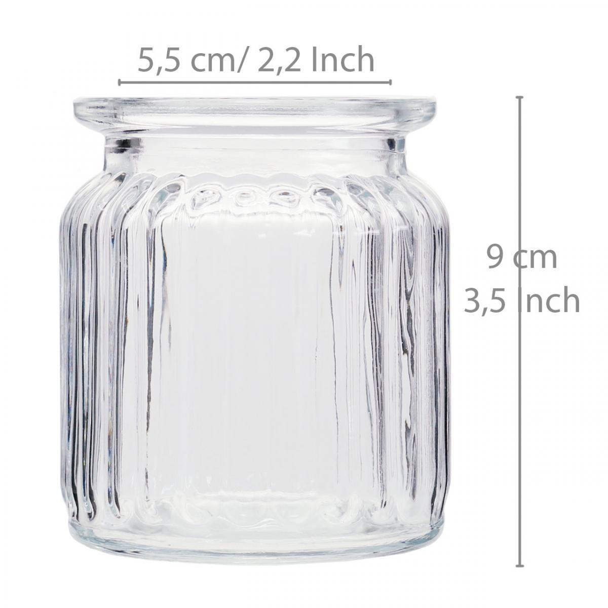 Glassvase ribbet vase glass Ø7,5cm H9cm 4stk