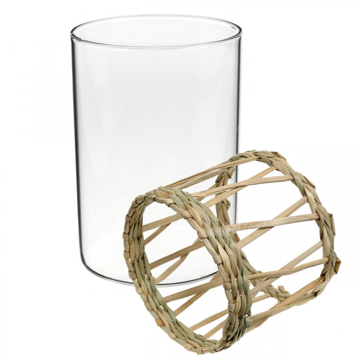 Glassvase sylinder flettet gress borddekor glass Ø8cm H12cm