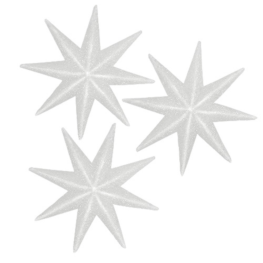 Glitterstjernen i hvitt er i en pakke med totalt 12 dekorative stjerner. De dekorative stjernene er også hvitkalkede og dekket med en glitrende glitter. Dette får deg til å se ut som om du er kommet rett frossen og dypt ut av snøen. Med en fin håndverktråd kan du også knytte de solide plaststjernene og bruke dem som juletrepynt eller som dekor for en grankrans.